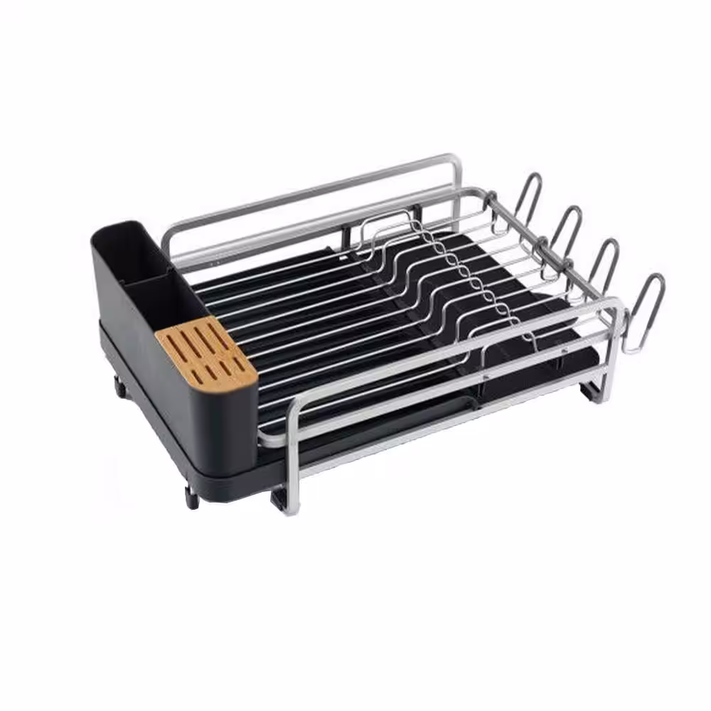 None Aluminum Expandable Drying Dish Rack with Drainboard and Rotatable Drainage Spout