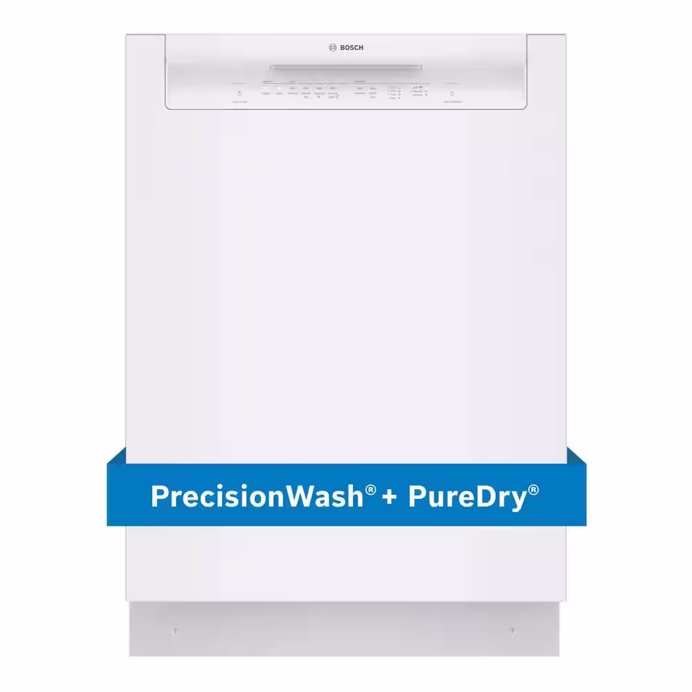 Bosch 100 Series 24 in. White Front Control Tall Tub Dishwasher with Hybrid Stainless Steel Tub, 50 dBA