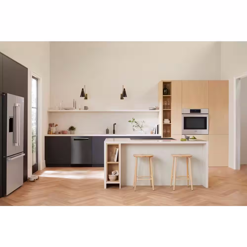 Bosch 100 Series 24 in. Black Front Control Tall Tub Dishwasher with Hybrid Stainless Steel Tub, 50 dBA