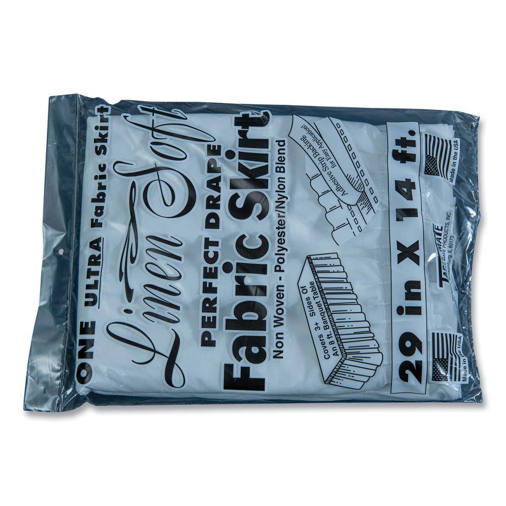Tablemate White Disposable Polyester Table Set Linen-Like Table Covers Skirting, 29 in. x 14 ft.