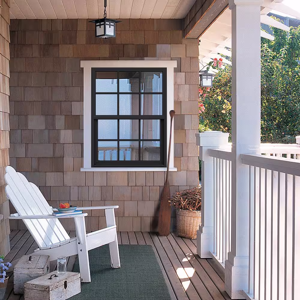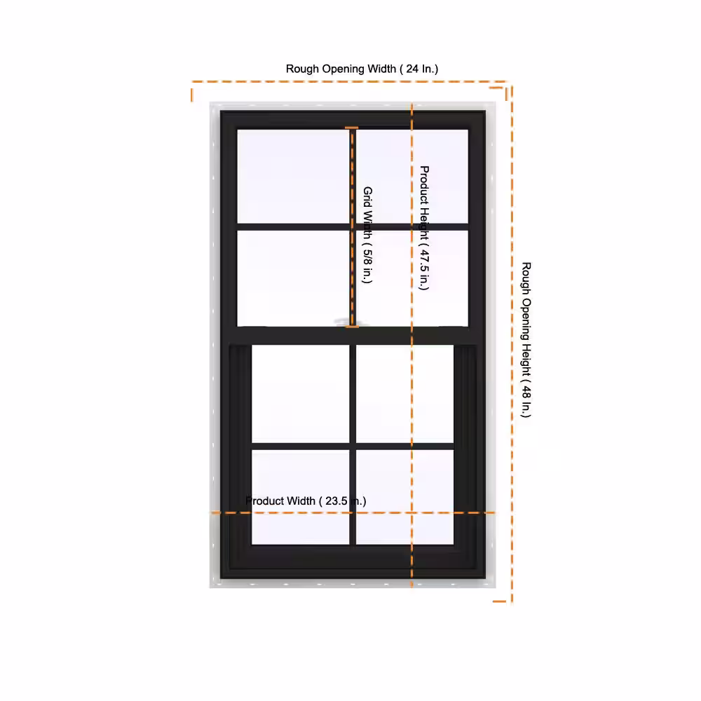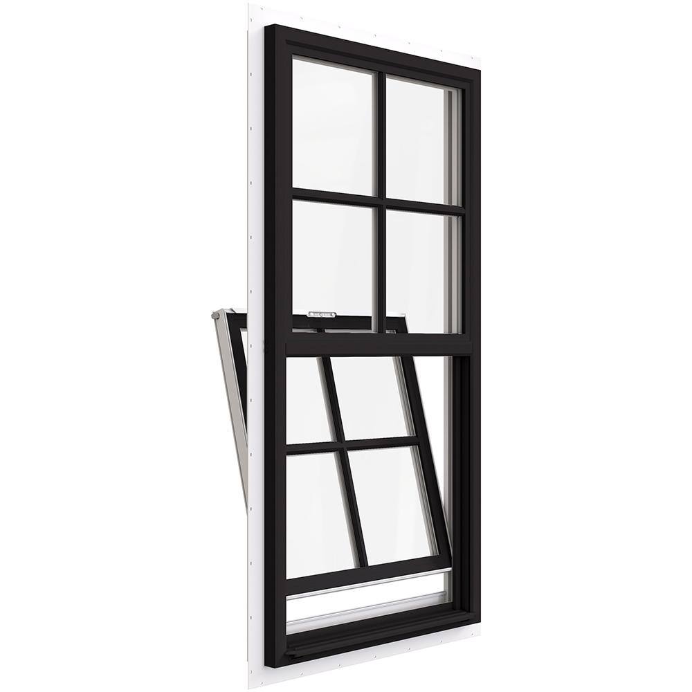 JELD-WEN 24 in. x 48 in. V-2500 Series Bronze FiniShield Vinyl Single Hung Window with Colonial Grids/Grilles