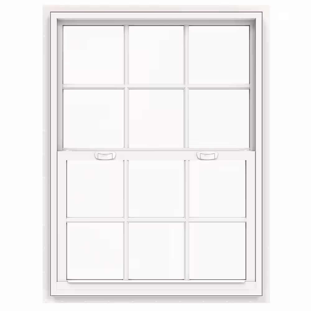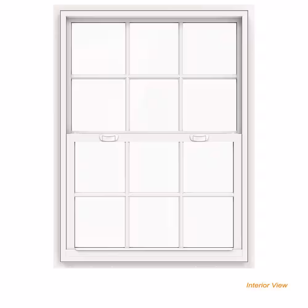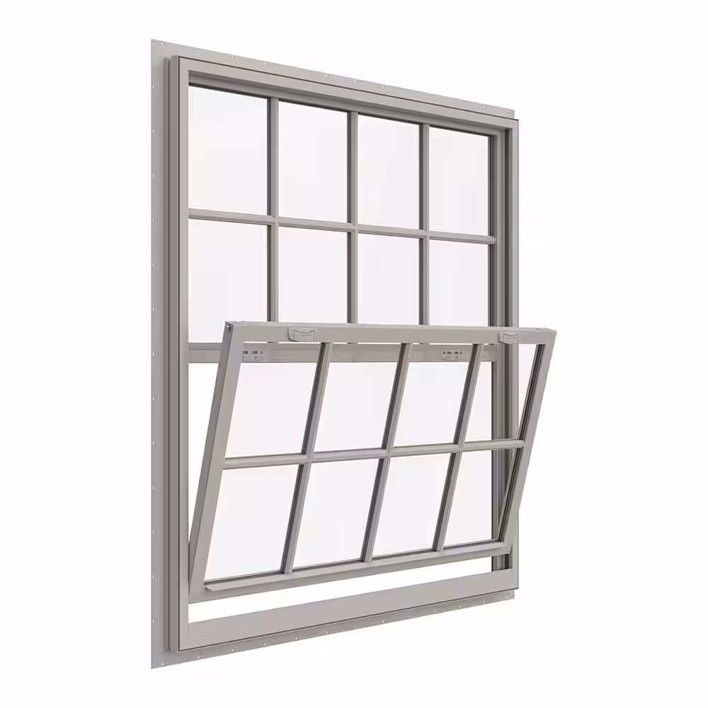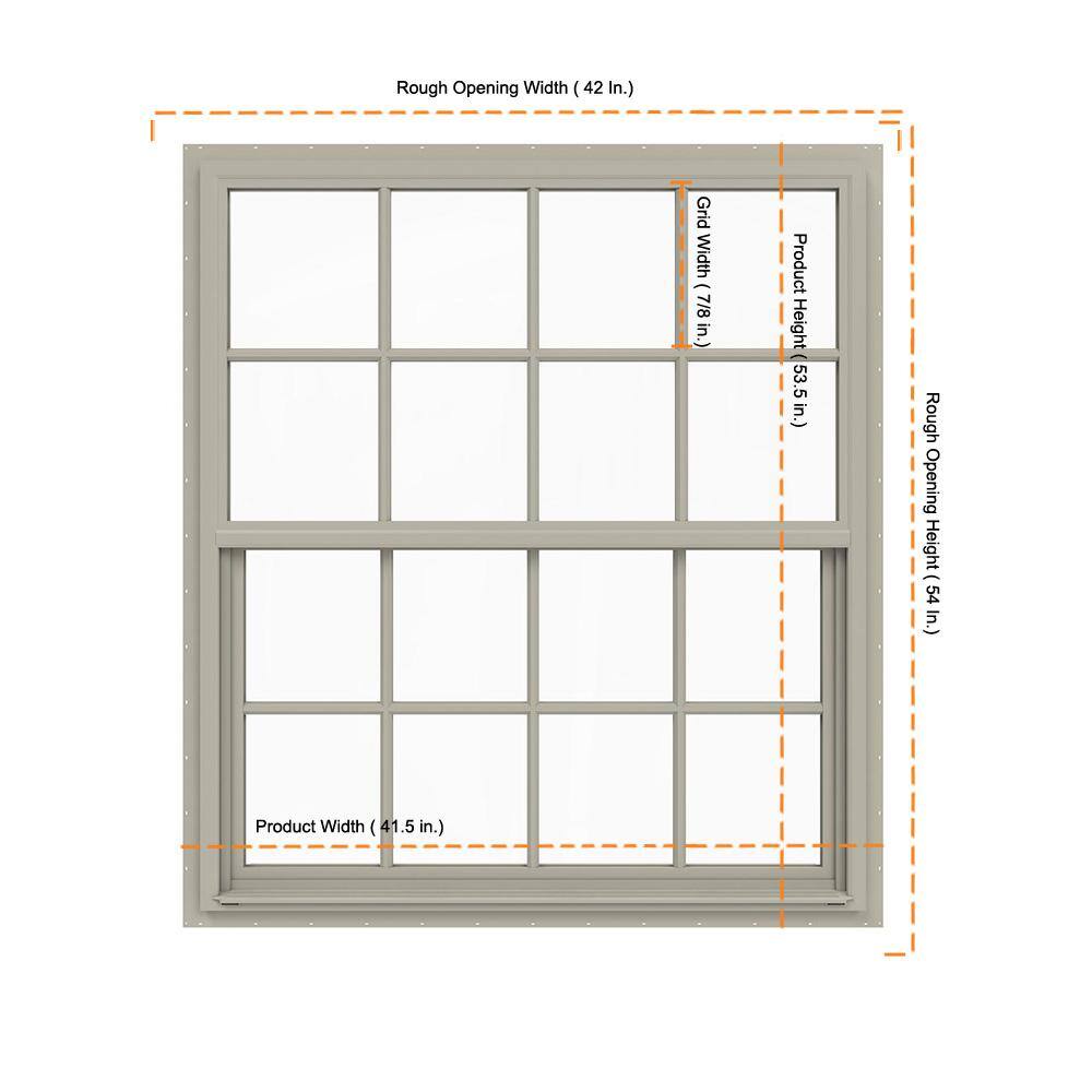JELD-WEN 42 in. x 54 in. V-4500 Series Desert Sand Single-Hung Vinyl Window with 8-Lite Colonial Grids/Grilles