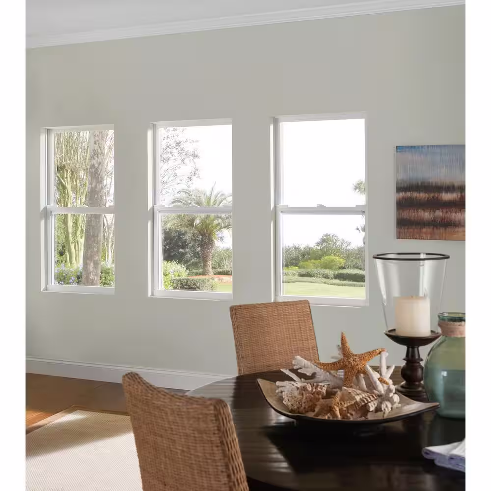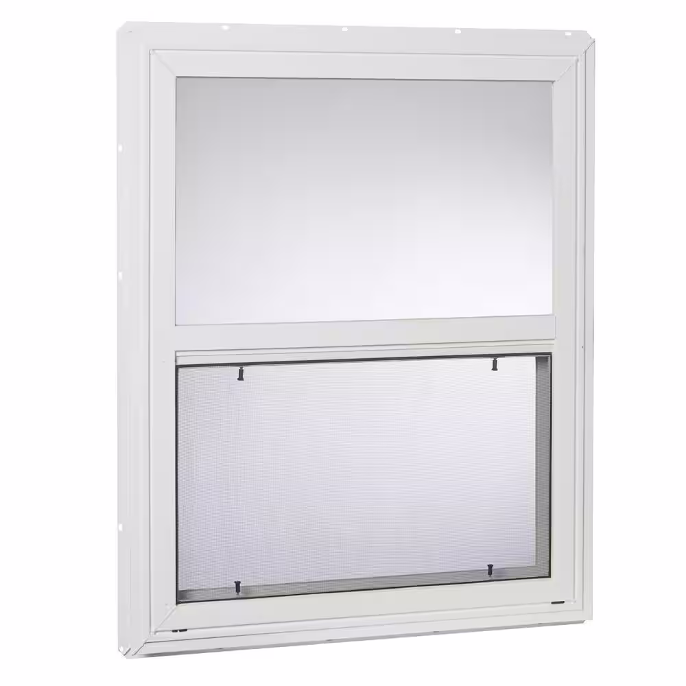 American Craftsman 50 Series Low-E Argon Glass Single Hung White Vinyl Fin Window, Screen Incl
