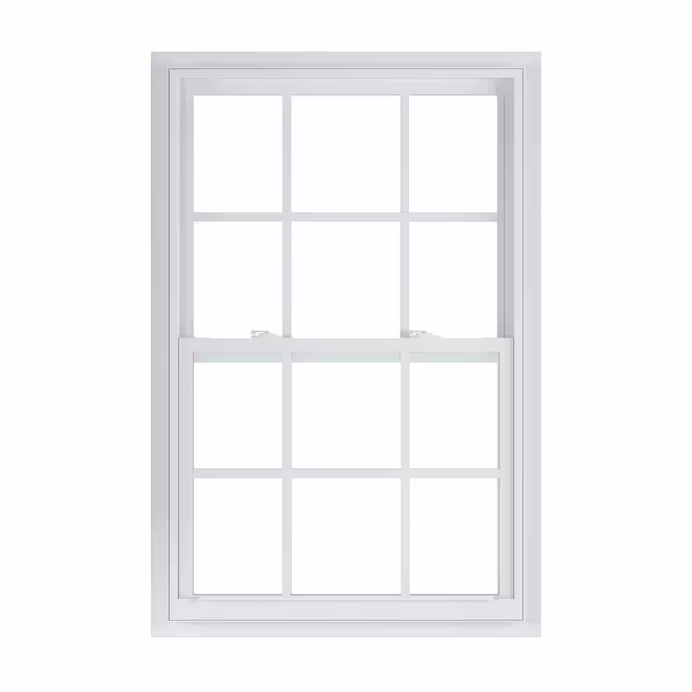 American Craftsman 50 Series Low-E Argon Glass Single Hung White Vinyl Fin Window with Grids, Screen Incl