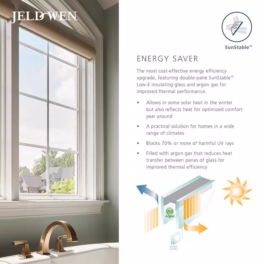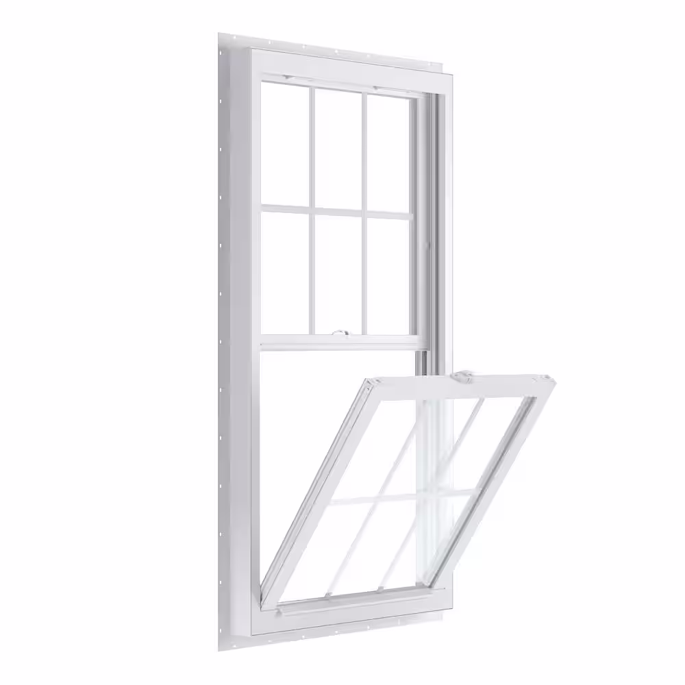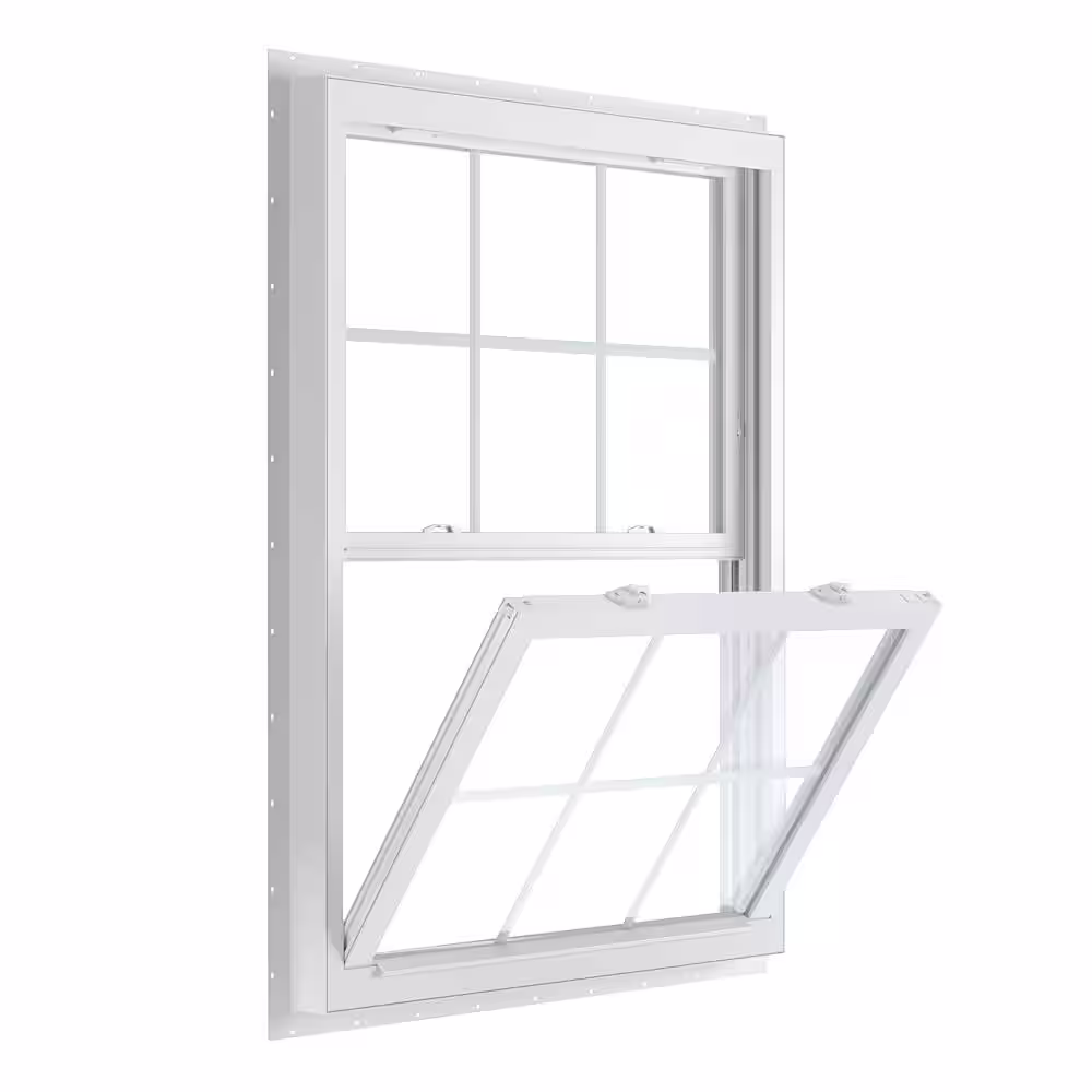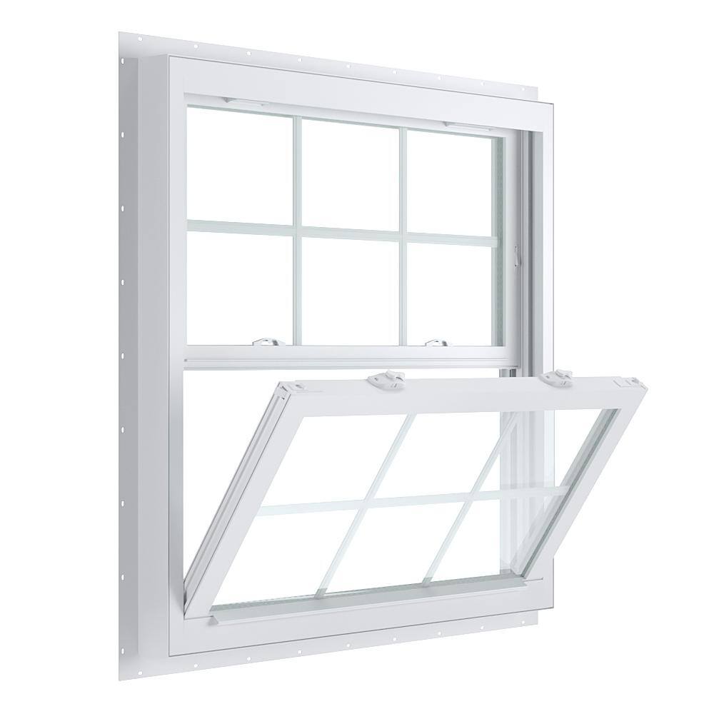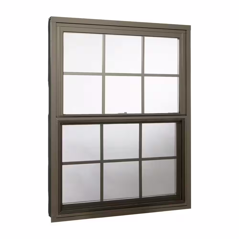 TAFCO WINDOWS 36 in. x 48 in. Double Hung Aluminum Window with Low-E Glass, Grids and Screen, Brown