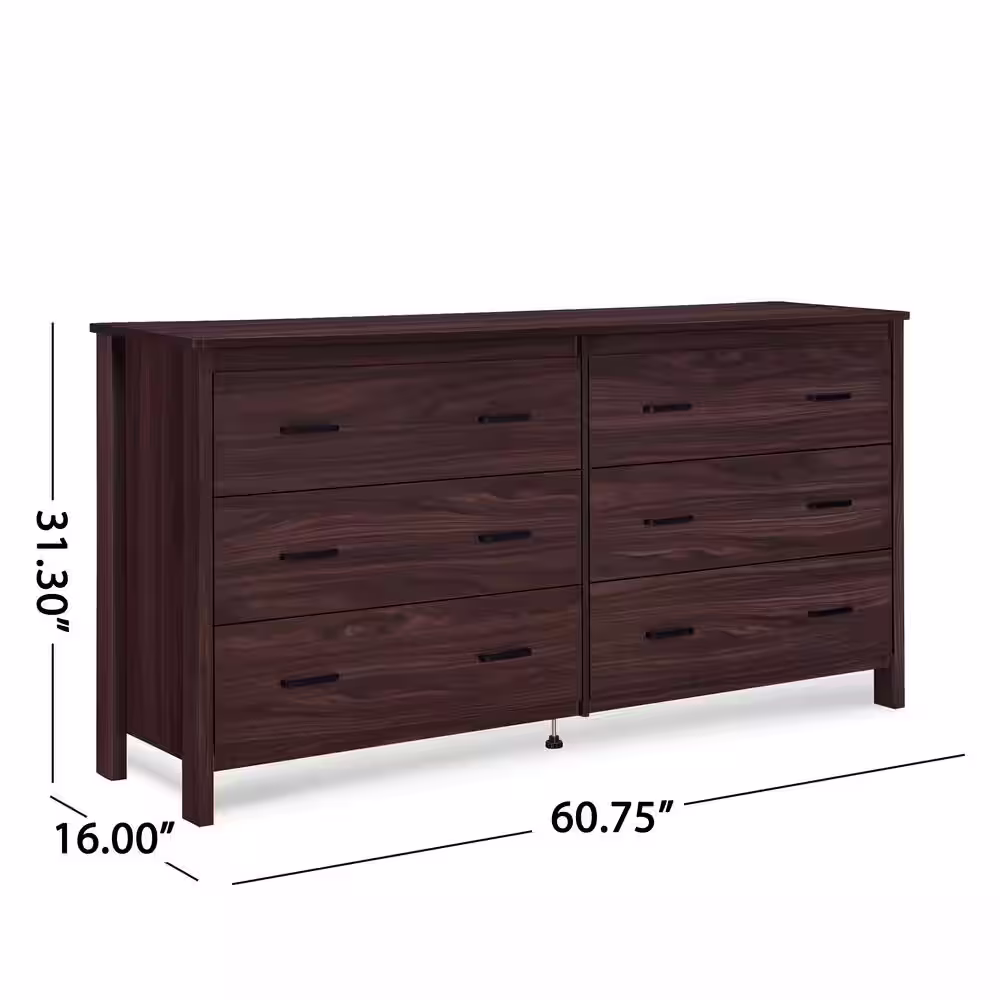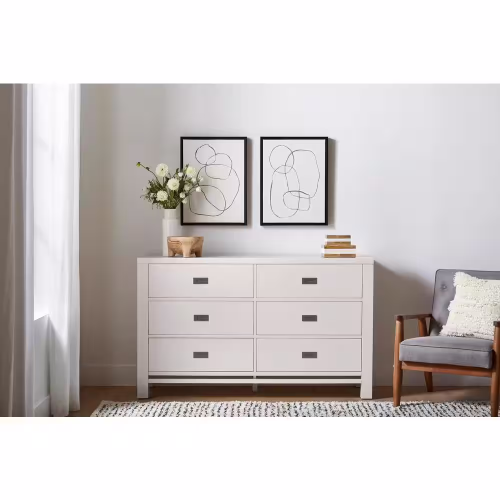 Home Decorators Collection Calden Bright White 6-Drawer Dresser (36 in. H x 60 in. W x 18 in. D)