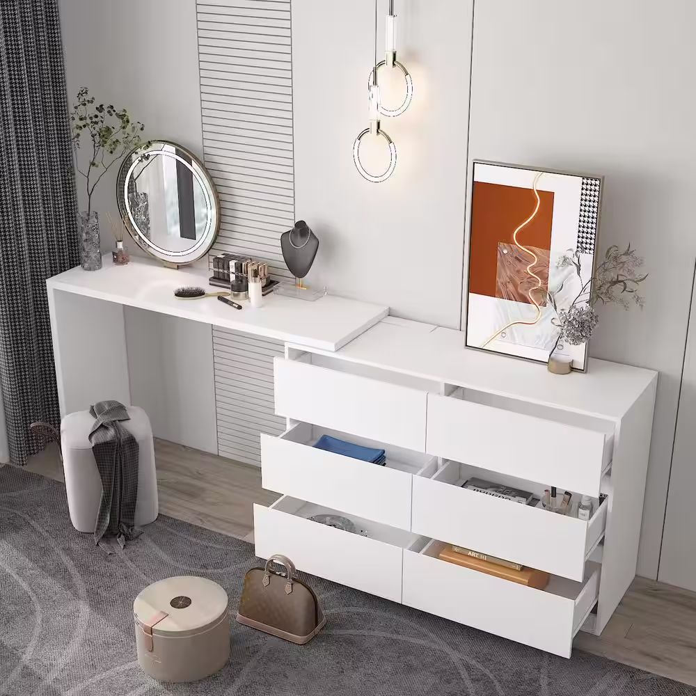 None 6-Drawer L-Shaped Dresser with Rotatable Desk 47.2 in. W x 51.2 in. D x 32.7 in. H