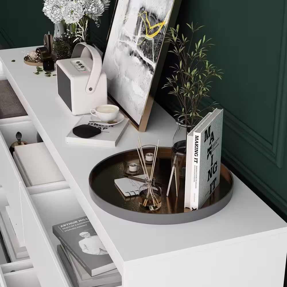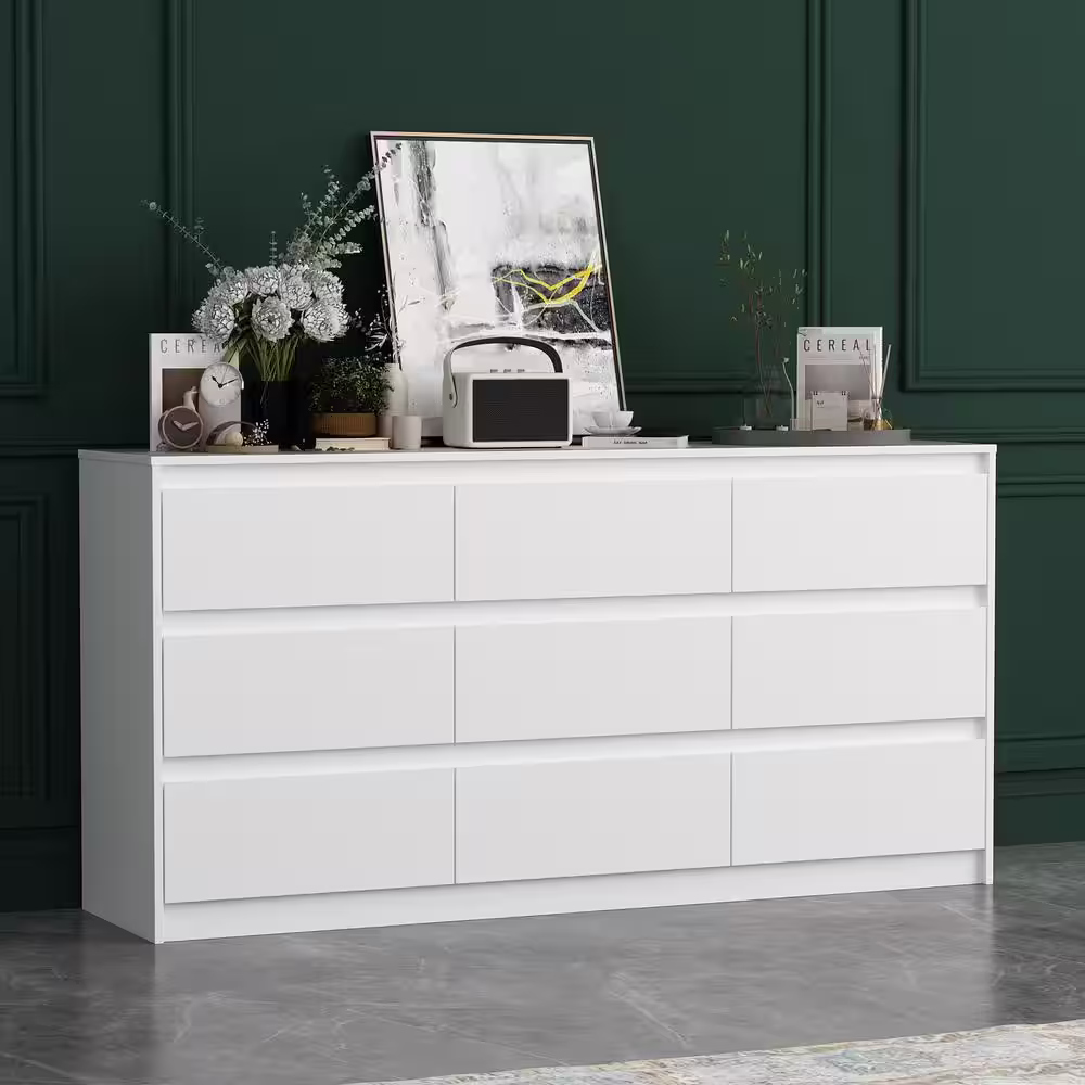 None 9-Drawer White Paint Finish Dresser Chest of Drawers 31.5 in. H x 63 in. W x 15.7 in. D