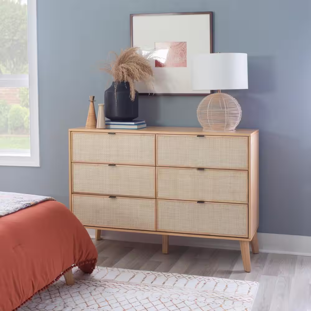 SAUDER Dover Edge 6-Drawer Glacier Oak Dresser 32.795 in. x 50.945 in. x 17.244 in.