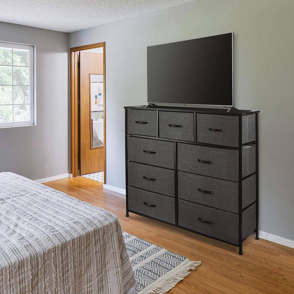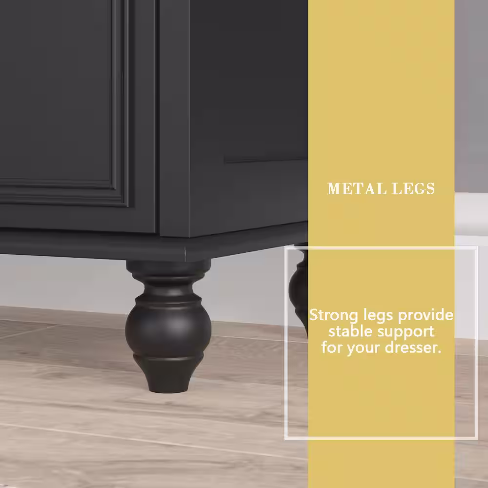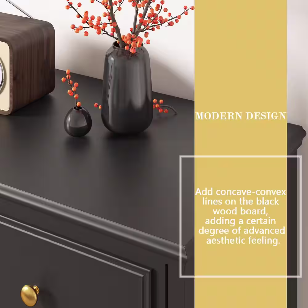 None Black Wooden 9-Drawer 63 in. W x 31.5 in. H x 15.7 in. D Dresser Storage Cabinet, Modern European Style