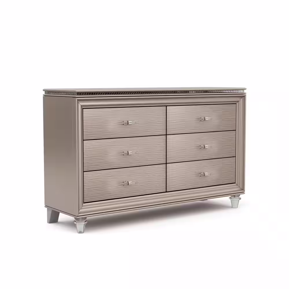 Furniture of America Panella 6-Drawer Rose Gold Dresser (34 in. H x 54.5 in. W x 16.5 in. D)