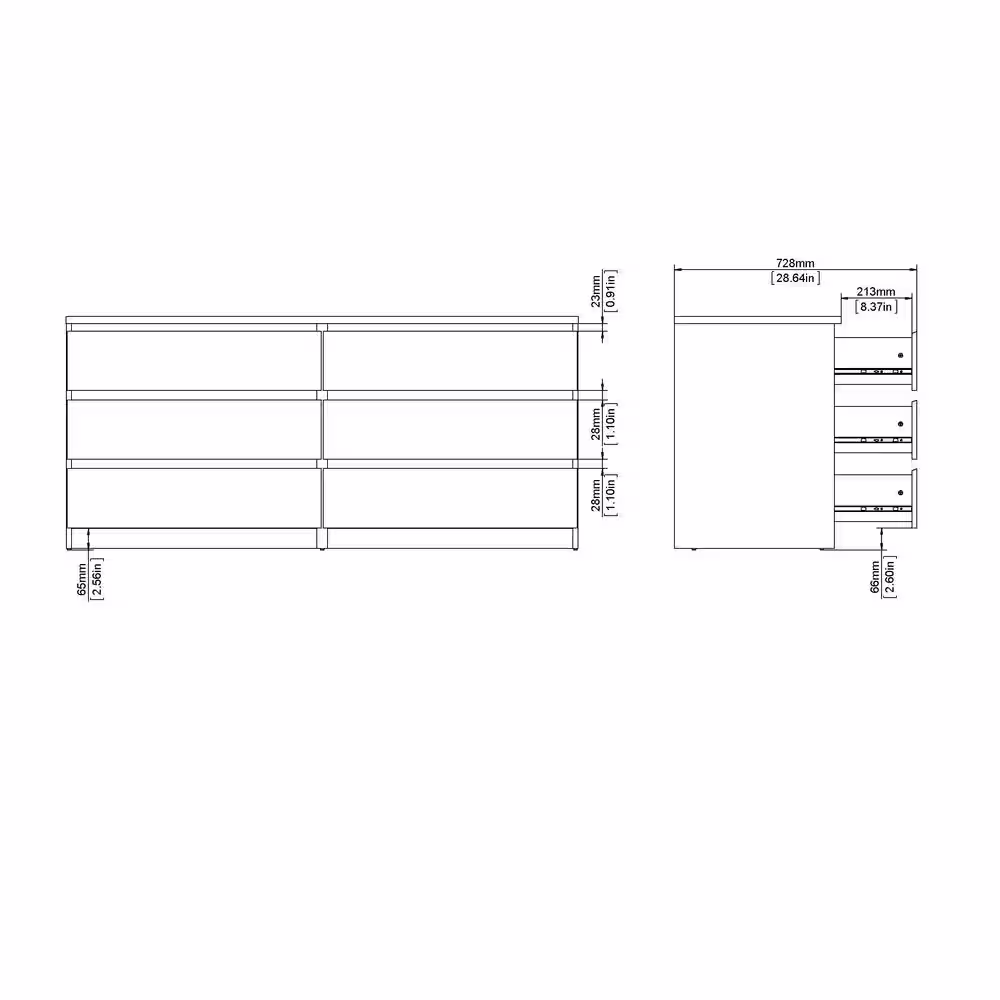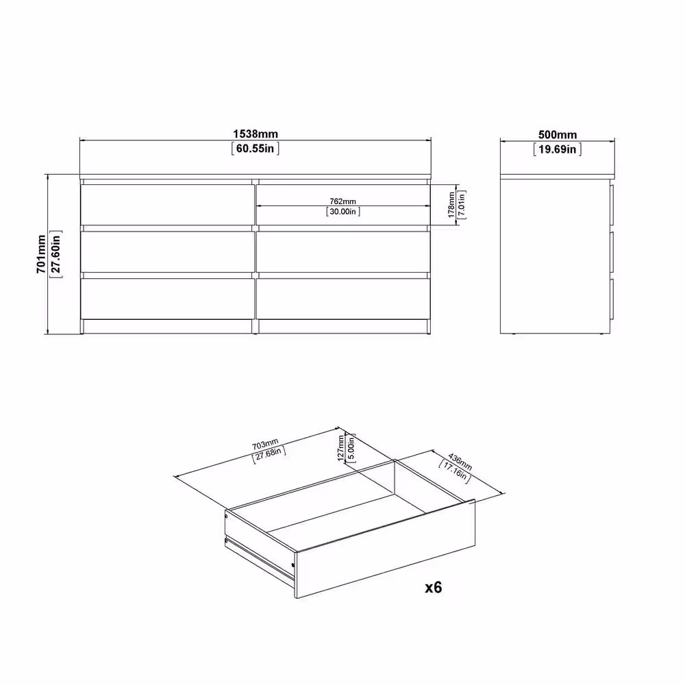 None 15.7 in. D x 32.3 in. H 6-Drawers White Wood 59 in. W Dresser Organizer
