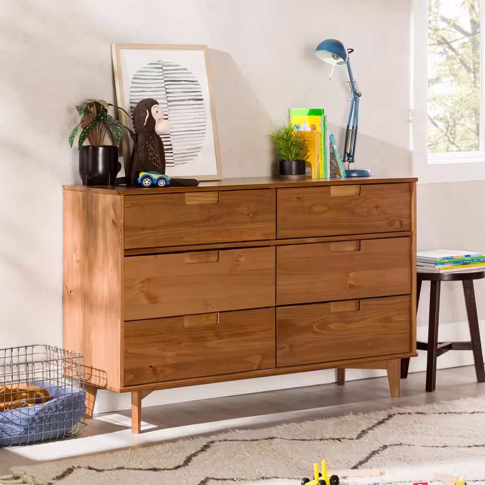 Walker Edison Furniture Company Sloane 6-Drawer Caramel Mid-Century Modern Solid Wood Dresser
