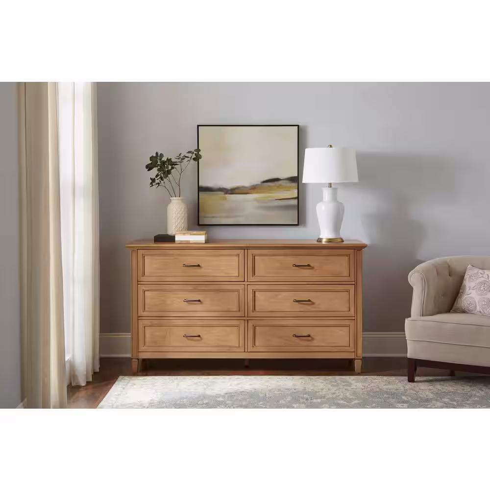 Home Decorators Collection Bonawick 6-Drawer Patina Wood Dresser (36 in. H x 66 in. W x 19 in. D)