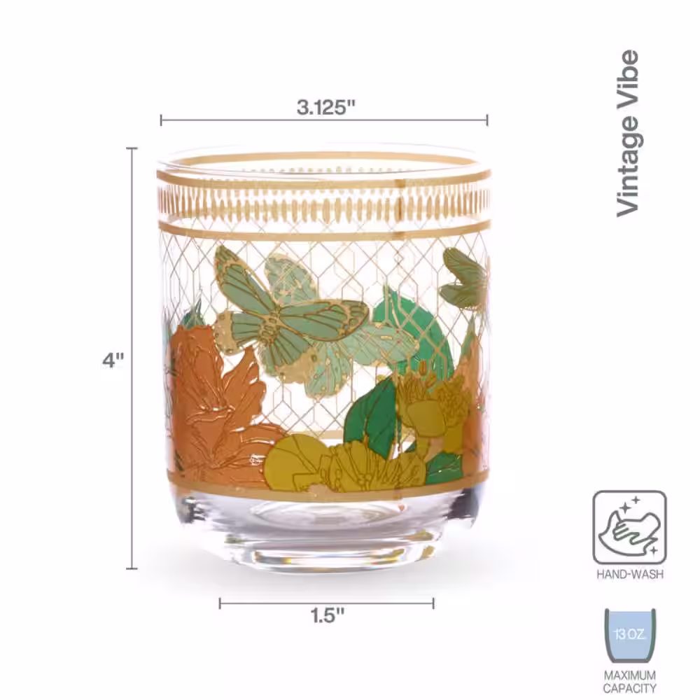 FITZ and FLOYD Vintage Vibe 13 oz. Double Old Fashioned Glass Set (Set of 4)