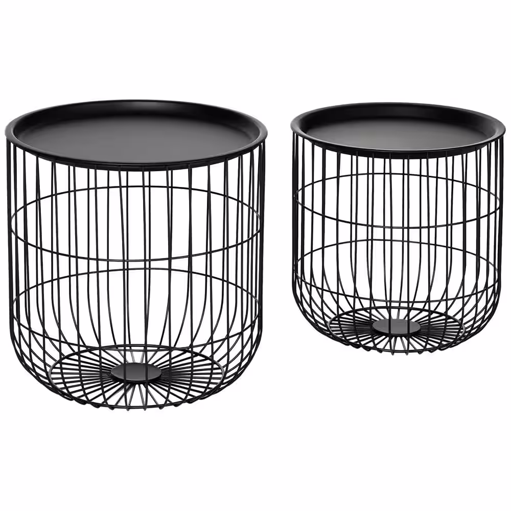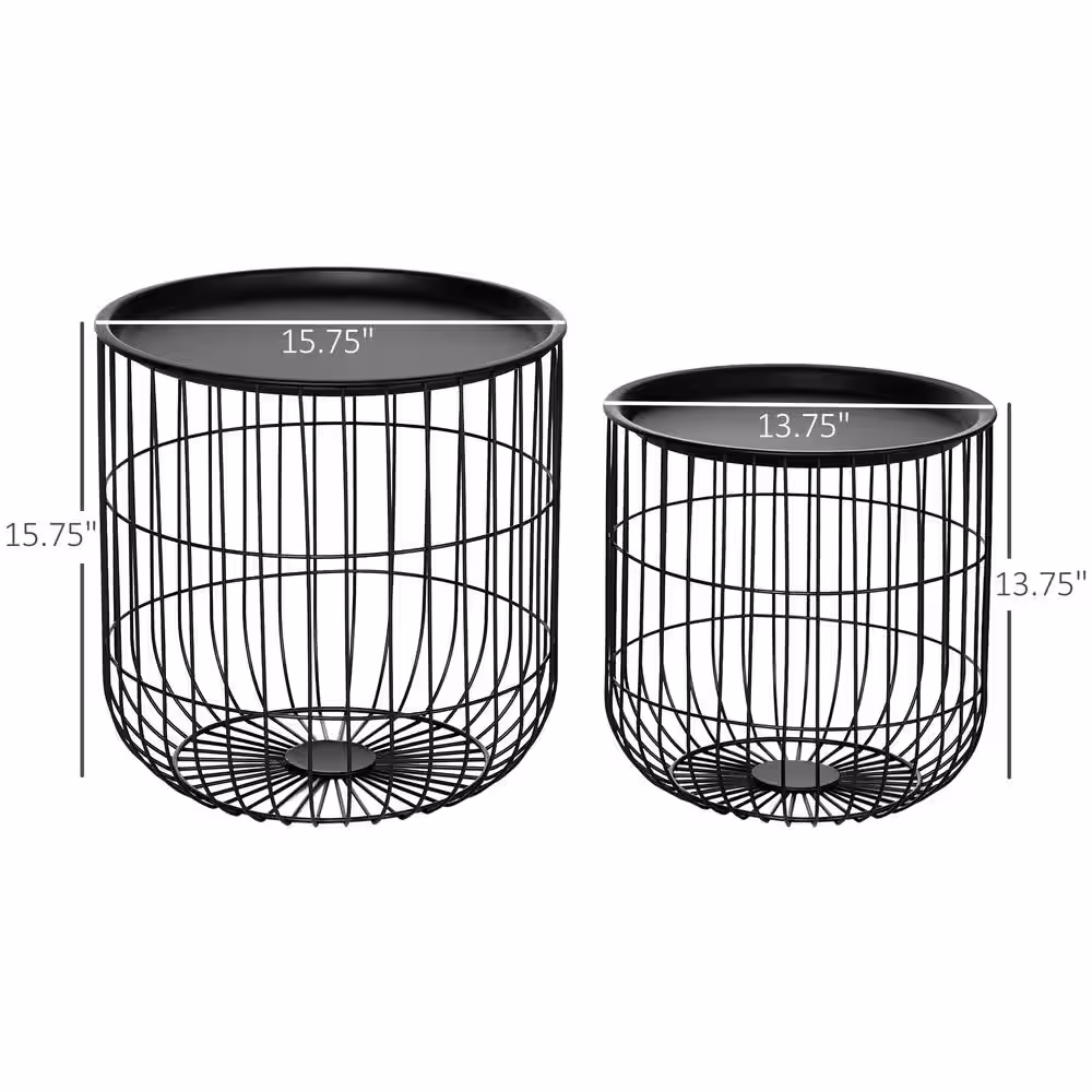 HOMCOM Black 15.75 in. L x 15.75 in. W x 15.75 in. H, Steel Coffee Table Set, Storage Basket