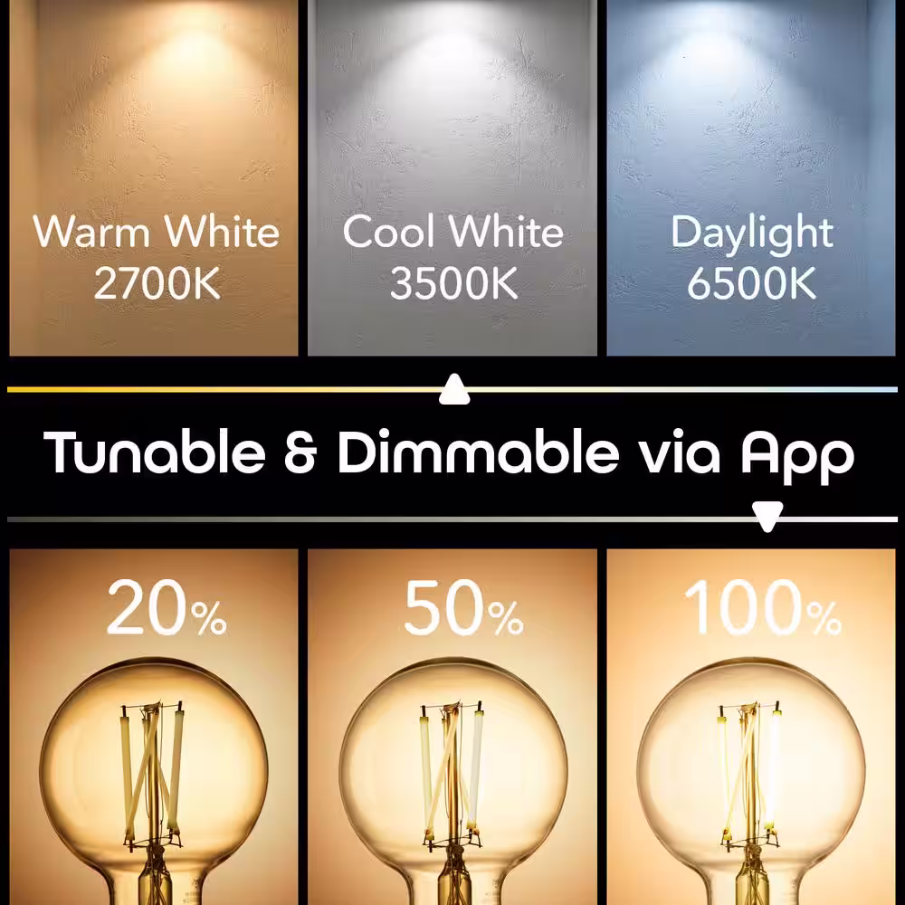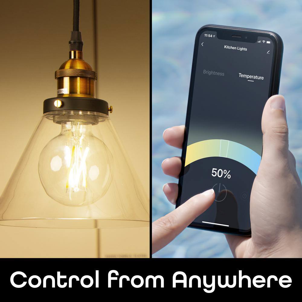 Geeni 60-Watt Equivalent G25 Dimmable Smart Edison Wi-Fi LED Light Bulb White (2-Pack)