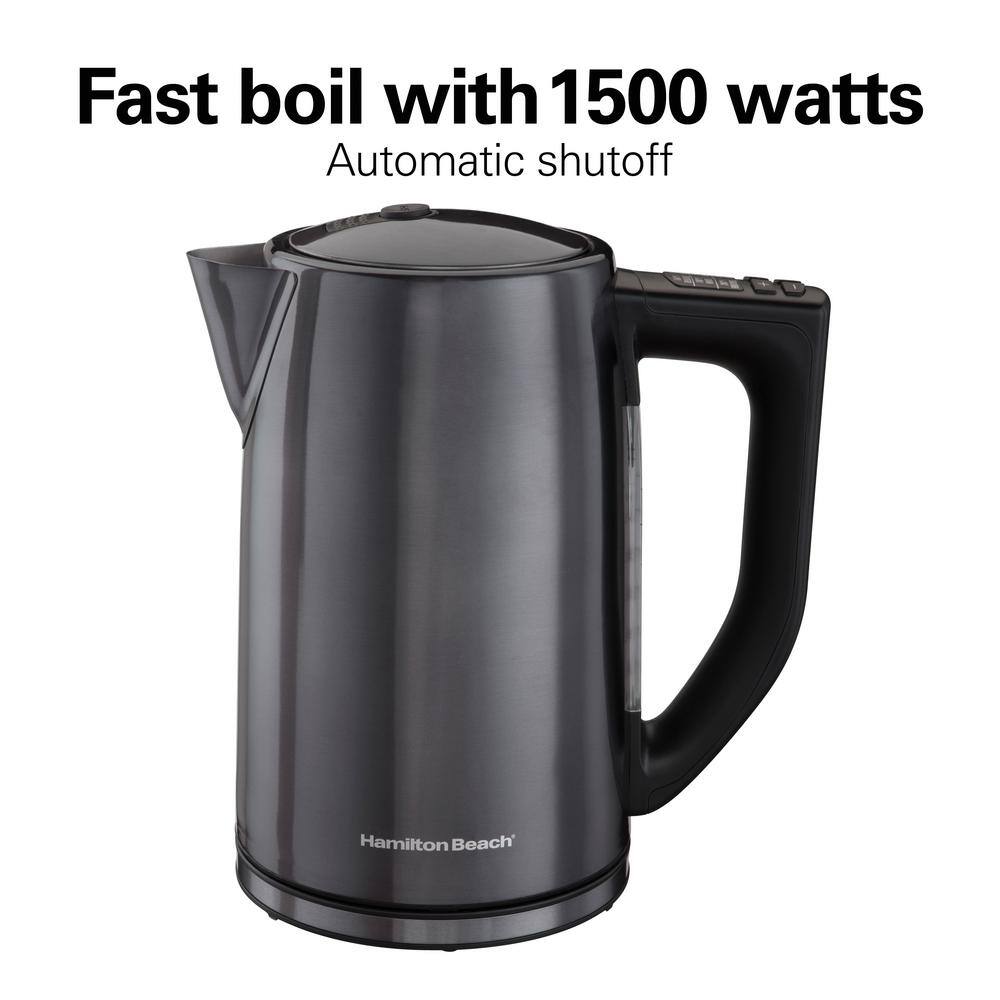 Hamilton Beach 7-Cup Black Stainless Steel Cordless Electric Kettle with Variable Temperature