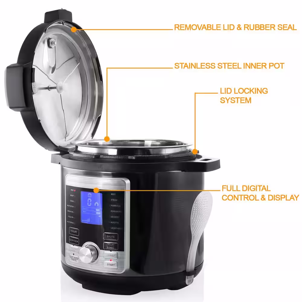 SPT 6 qt. Stainless Steel Electric Pressure Cooker with Built-In Timer and Stainless Steel Pot
