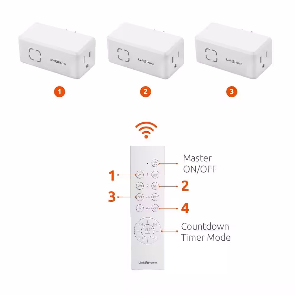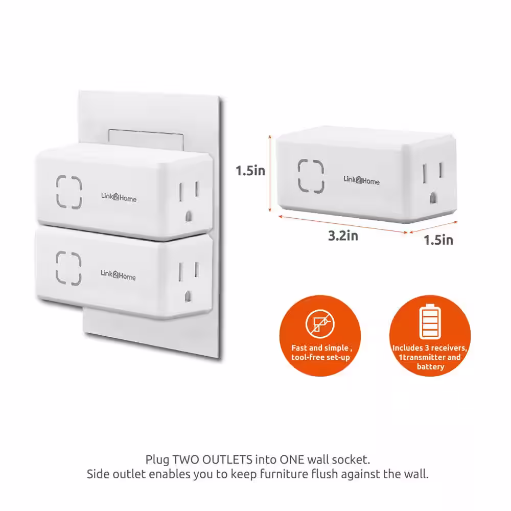 Link2Home Wireless Indoor Remote Control Outlet Switch with 5 RCVs and 2 Remotes