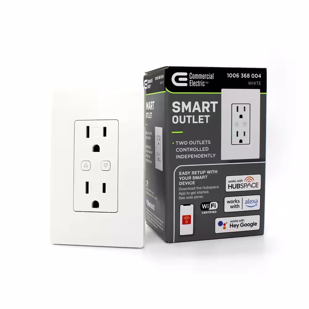 Commercial Electric Smart 15 Amp 120-Volt Tamper Resistant White Duplex Outlet Powered by Hubspace (1-pack)