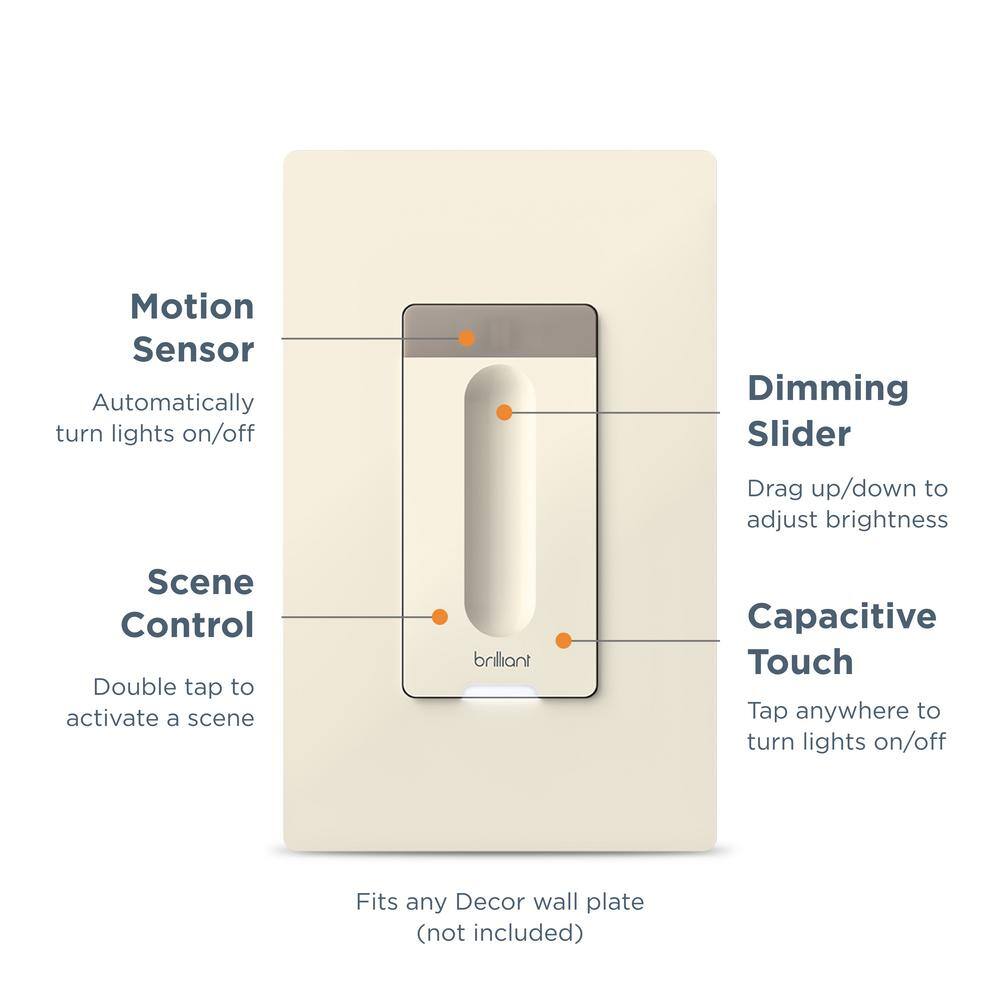 Brilliant Smart Dimmer Switch (Light Almond) - Alexa, Google Assistant, Hue, LIFX, TP-Link, and more