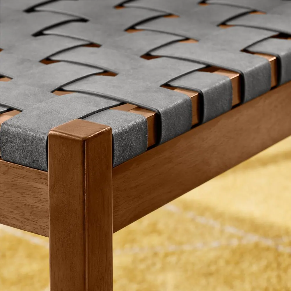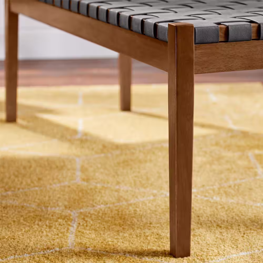 StyleWell Brickmore Gray Woven Dining Bench with Haze Finish Wood Accents (54" W)