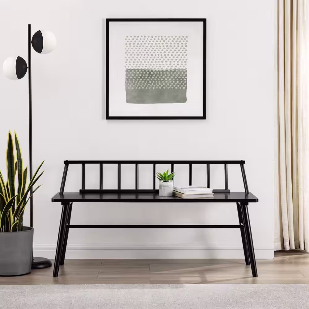 Welwick Designs Black Solid Wood Scandinavian Bench with Low Spindle Back (26 in. H x 48 in. W x 17 in. D)