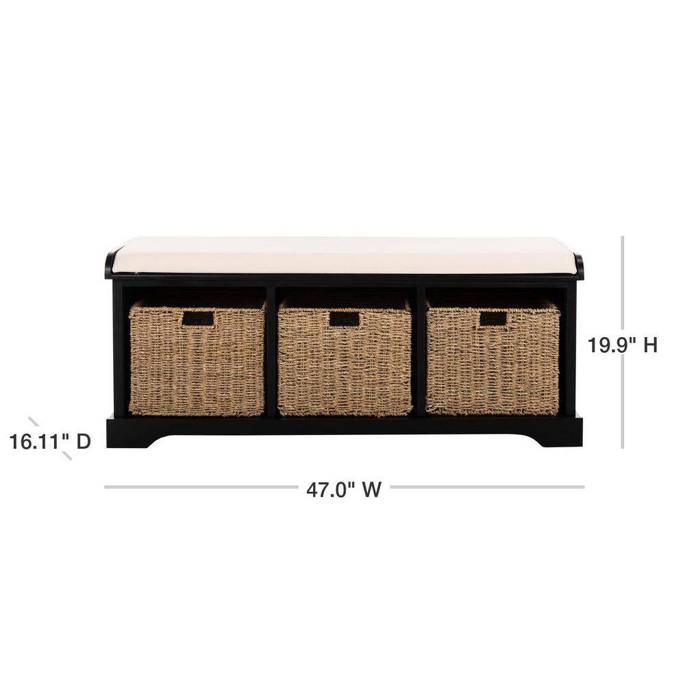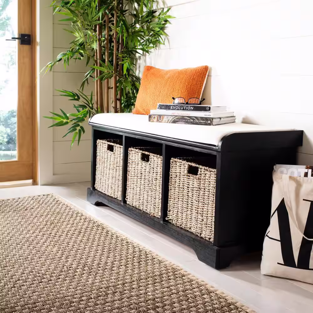 Harper & Bright Designs Espresso Entryway Storage Bench with Removable Cushion and 3-Removable Classic Fabric Basket