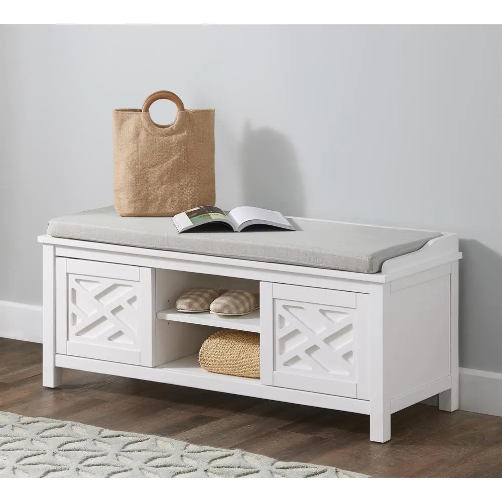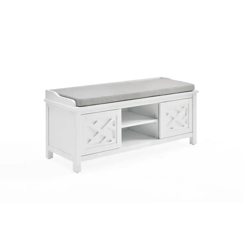 Alaterre Furniture 45 in. W Coventry White Wood Bench with Storage and Cushion