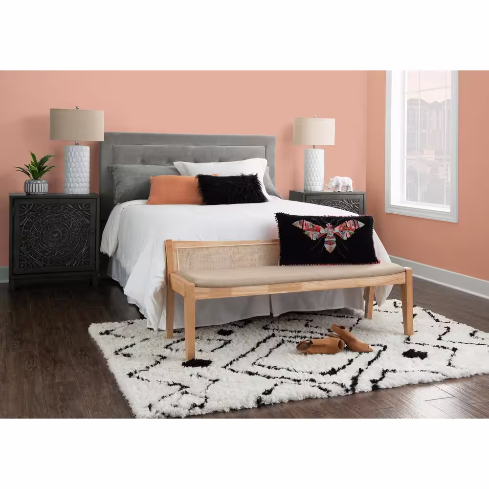 Powell Company Tara Natural 52.36"L x 18.75"D x 23.37"H Cane Bench with Padded Seat