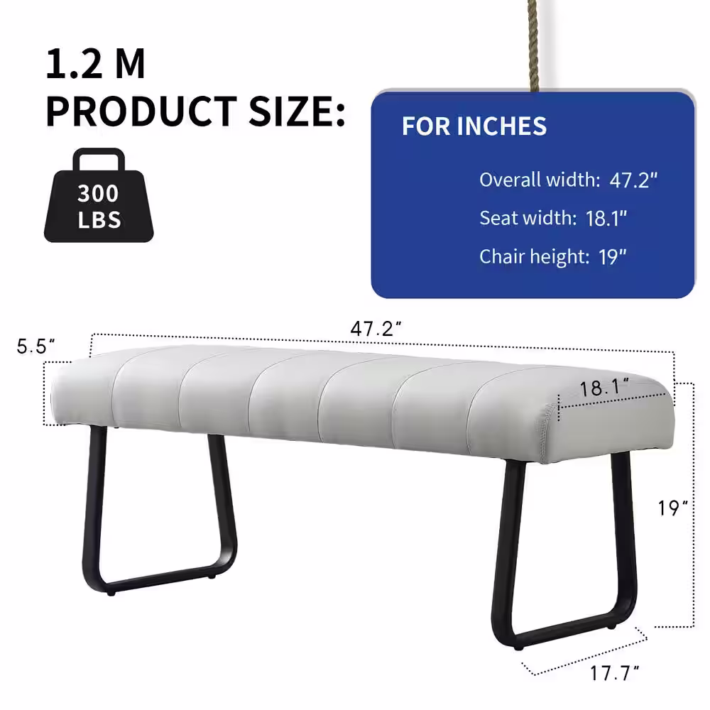 GOJANE Modern White Dining Bench Backless with Metal Legs 47.2 in. (White)