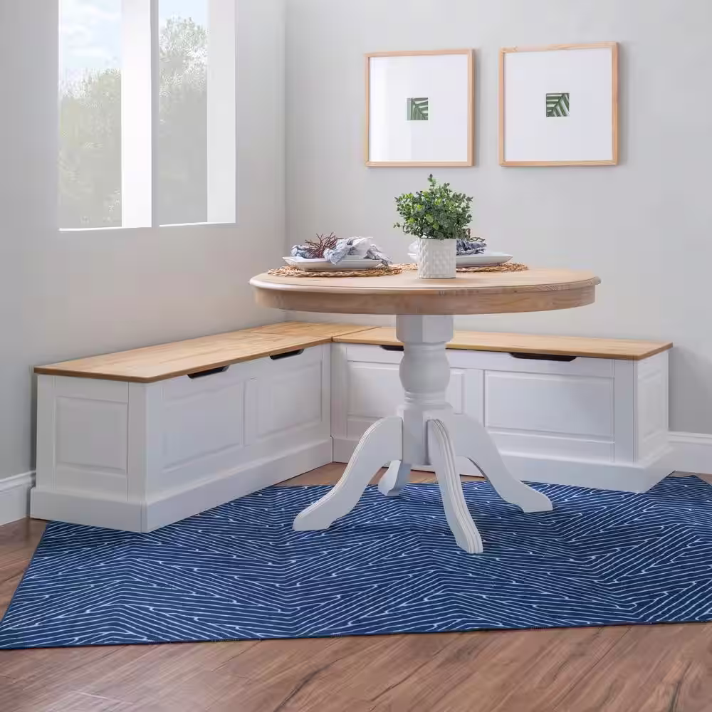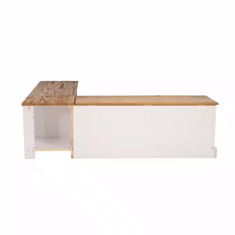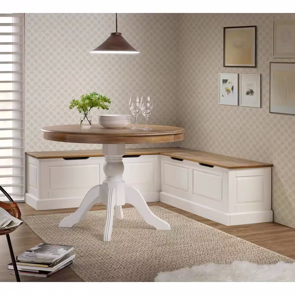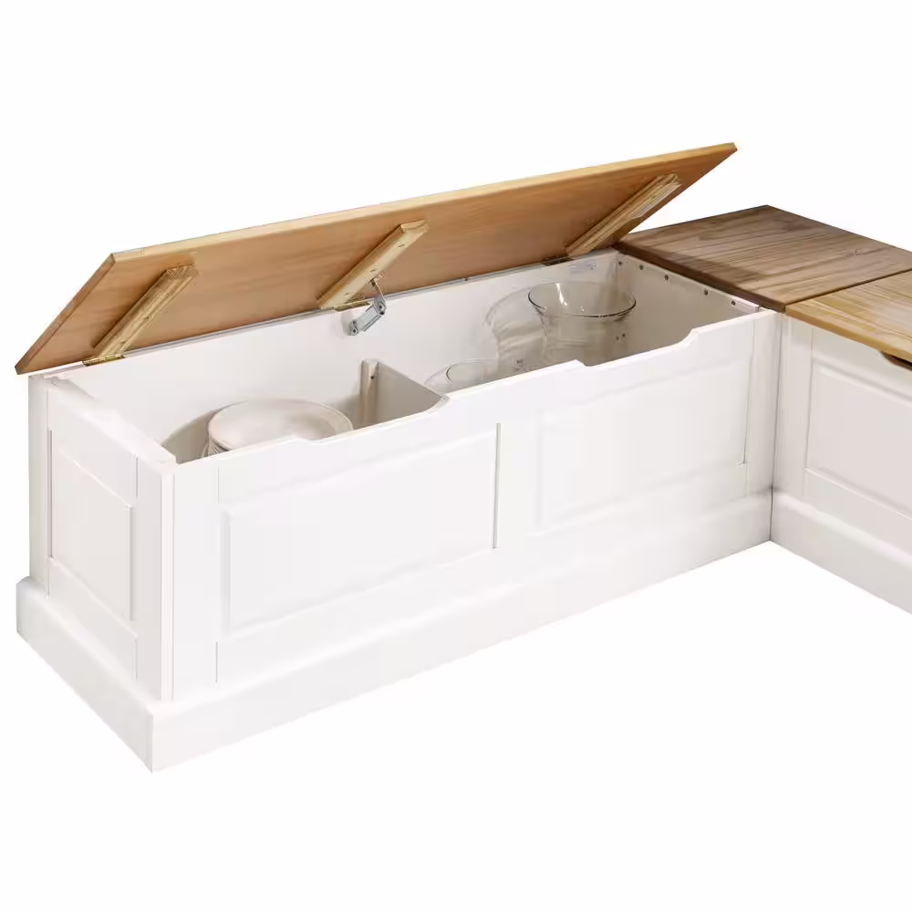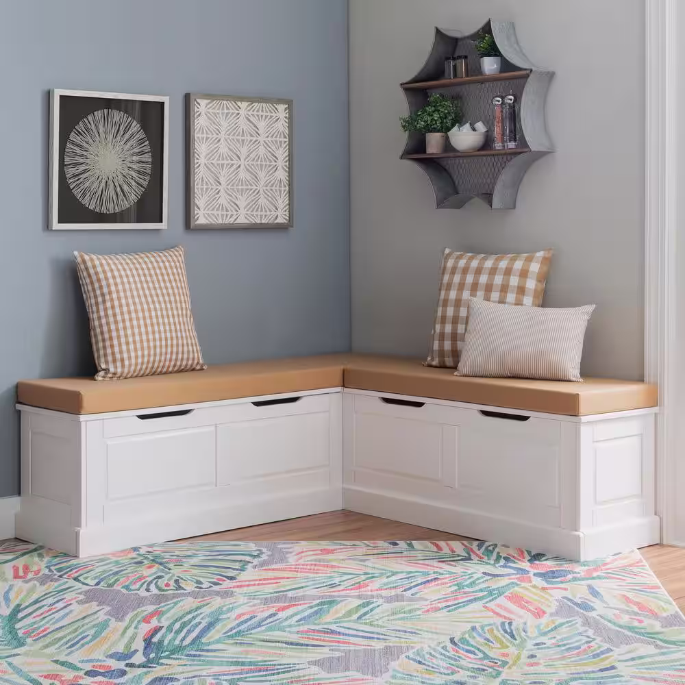 Linon Home Decor Rockhill Natural and White Backless Nook 62 in. L x 16.50 in. D x 18.25 in. H