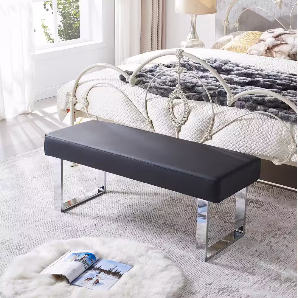 GOJANE Modern Black Dining Bench Backless with Metal Legs 55.1 in. (Black)