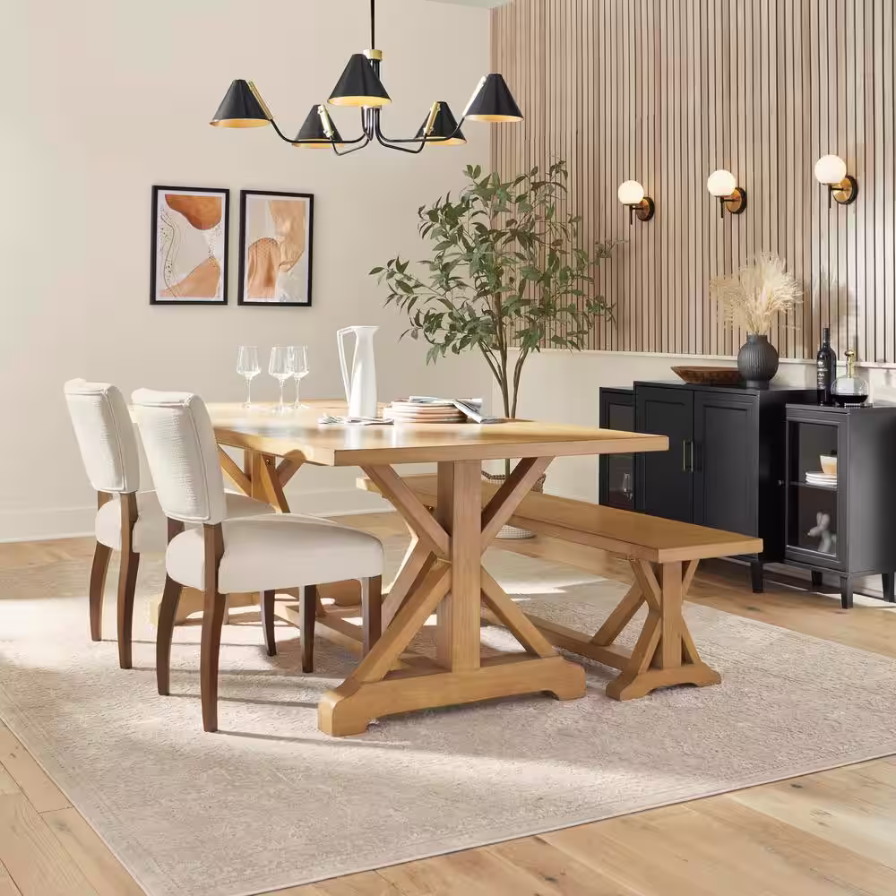 Home Decorators Collection Aberwood Patina Oak Finish Wood Trestle Dining Bench (75 in. W x 18 in. H)