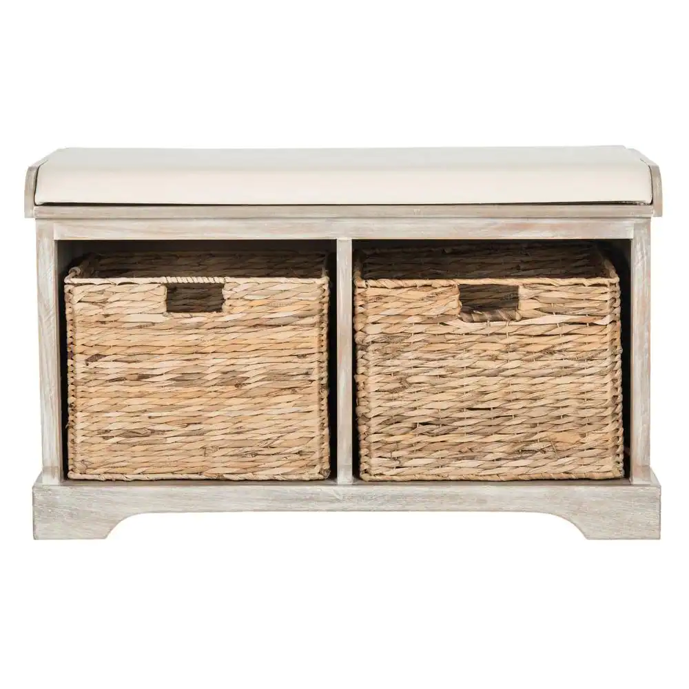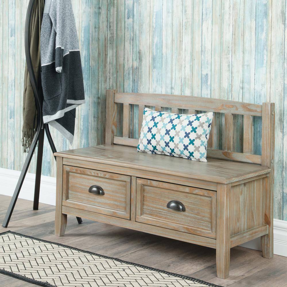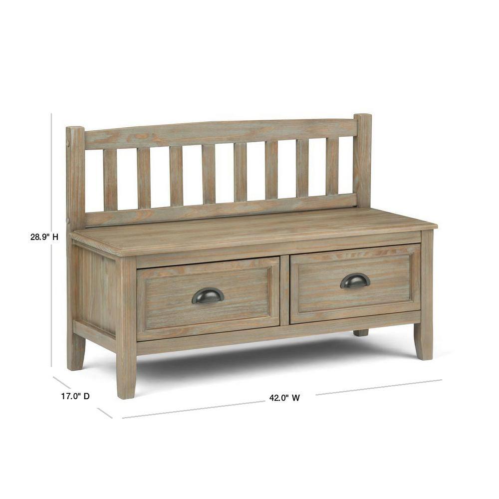 Simpli Home Burlington Solid Wood 42 in. Wide Transitional Entryway Storage Bench with Drawers in Distressed Grey