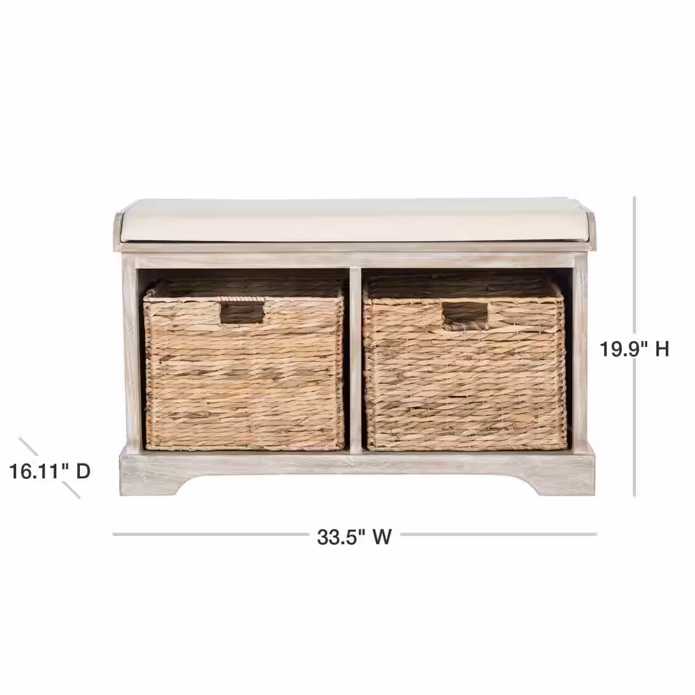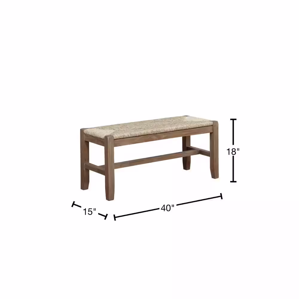 Alaterre Furniture Newport Brown Wood Bench with Rush Seat 18 in. H x 40 in. W x 15 in. D