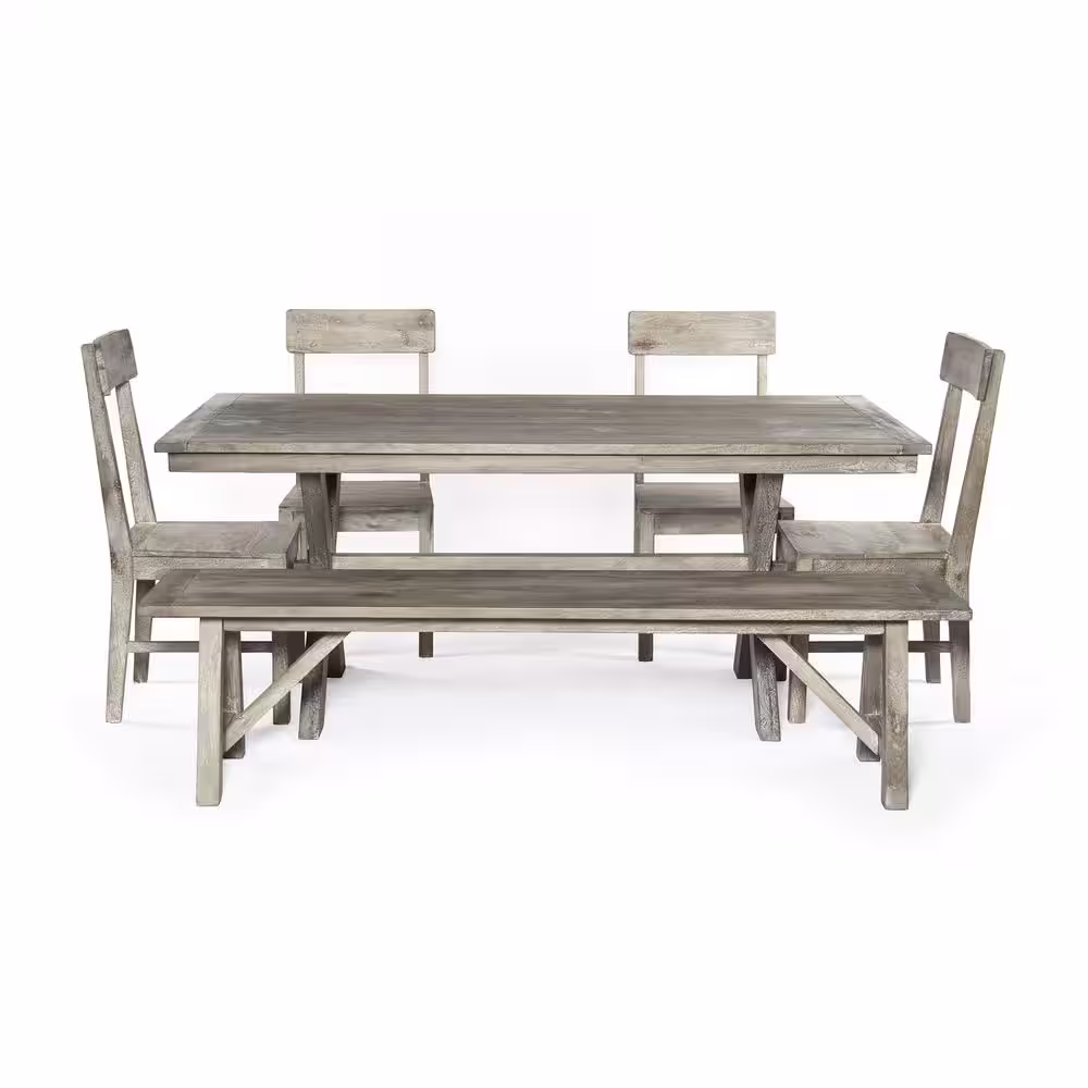 Benjara 15 in. L x 62 in. W x 18 in. H Brown Acacia Wood Bench with Thick Block Legs