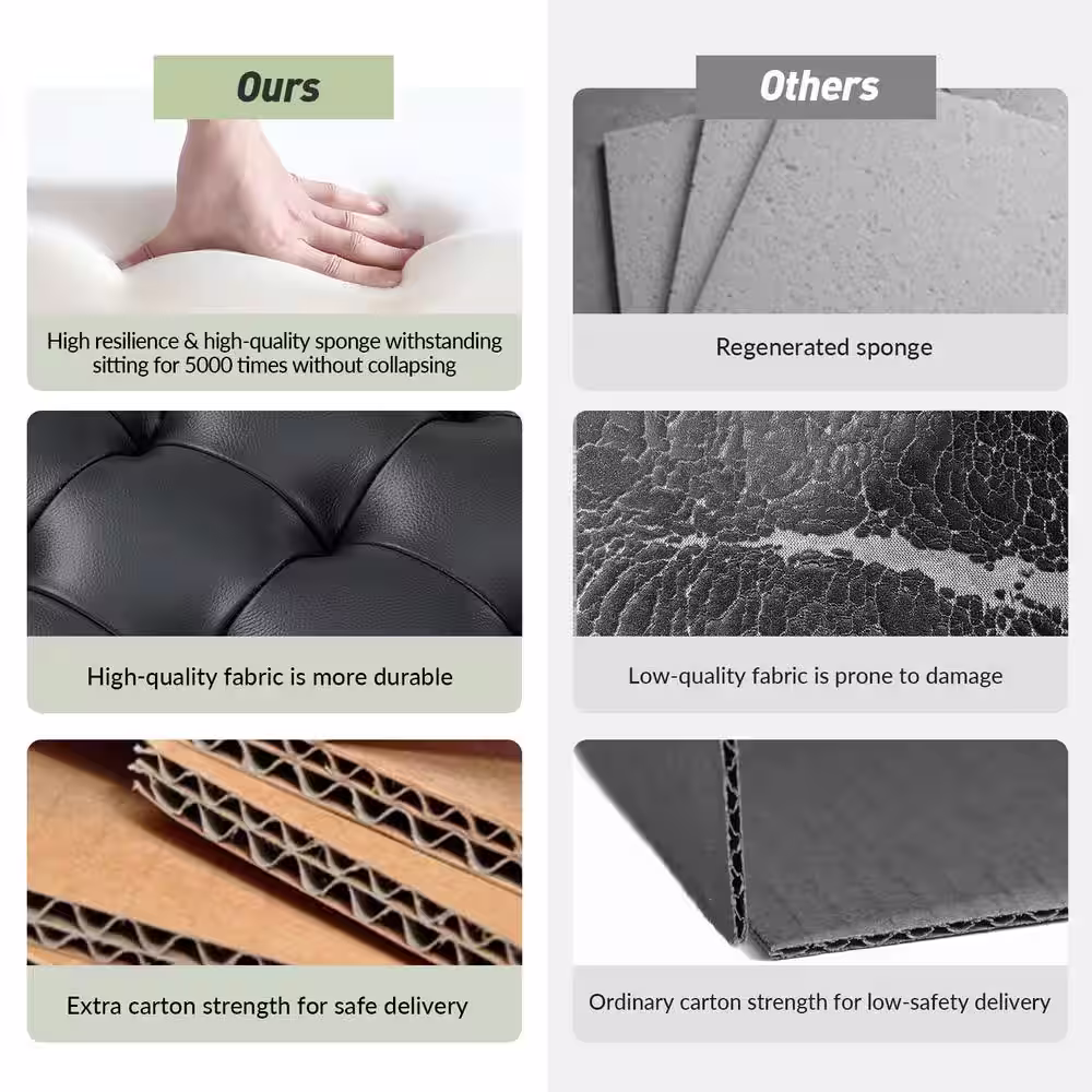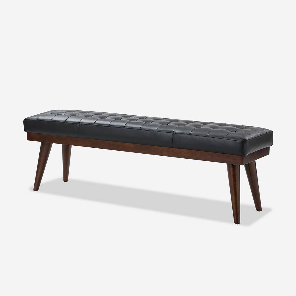 JAYDEN CREATION Paula 55.5 in. Wide Black Genuine Leather Bedroom Bench with Solid Wood Base