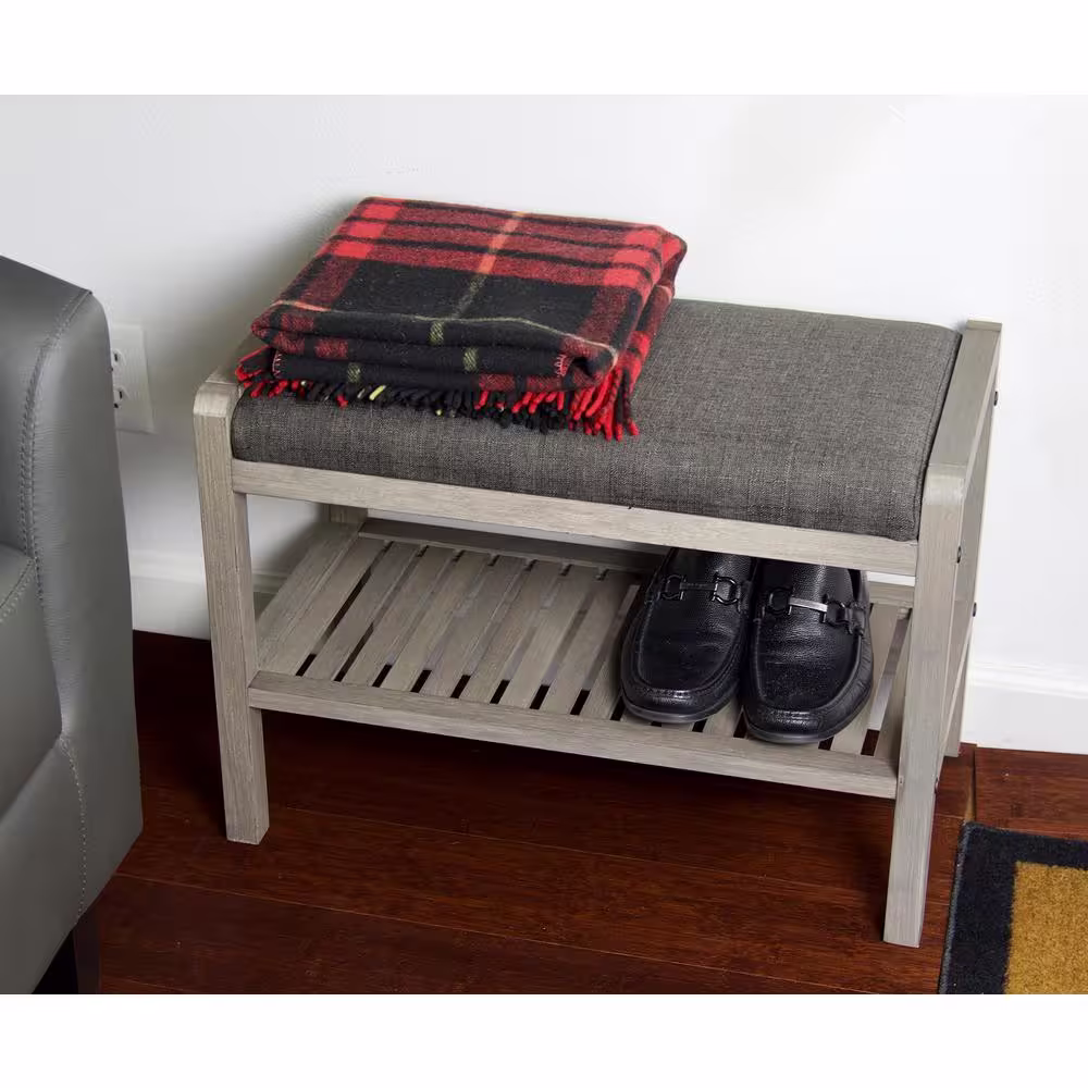 Linon Home Decor Cape Anne Dark Walnut Padded Bench with Shoe Organization
