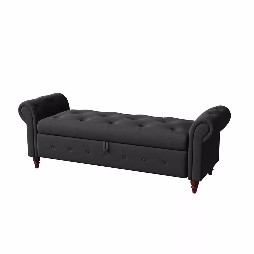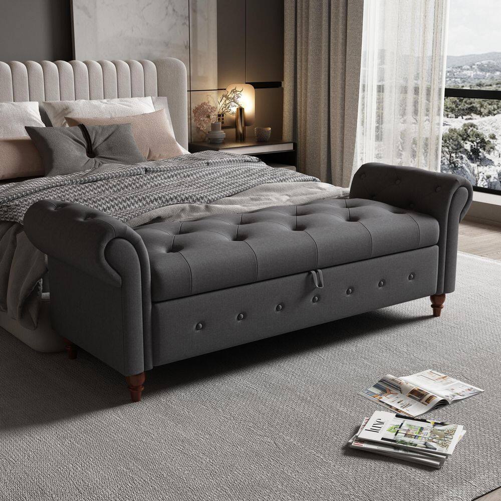 None Nordic Dark Gray Fabric Bed Bench with Storage Compartment (25 in. H X 63 in. W X 22in. D)