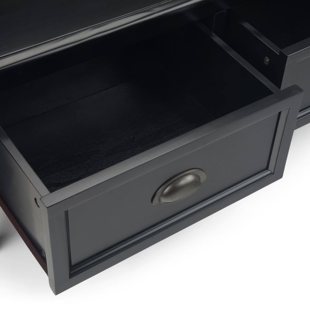 Simpli Home Burlington Solid Wood 42 in. Wide Transitional Entryway Storage Bench with Drawers in Black