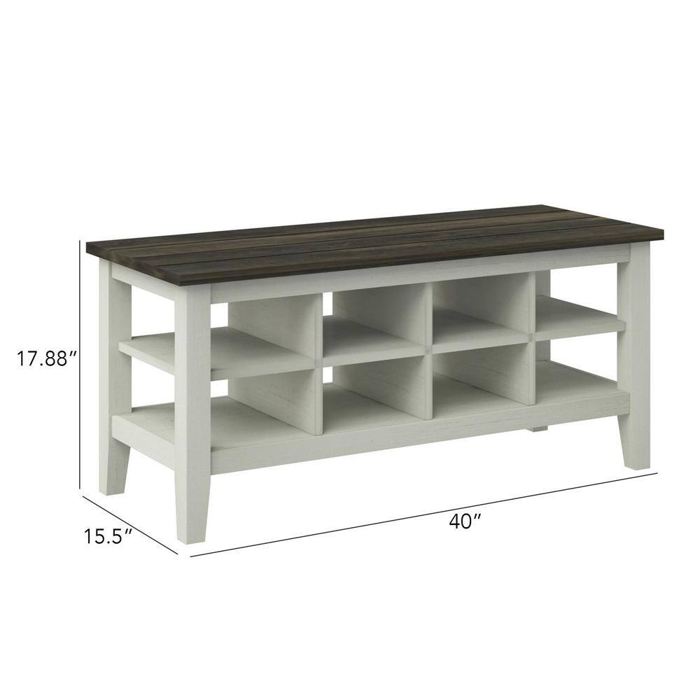 Twin Star Home Old Wood White Storage Bench with Removable Dividers 17.88 in. x 40 in. x15.5 in.