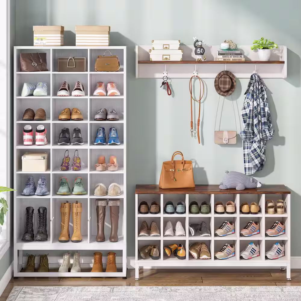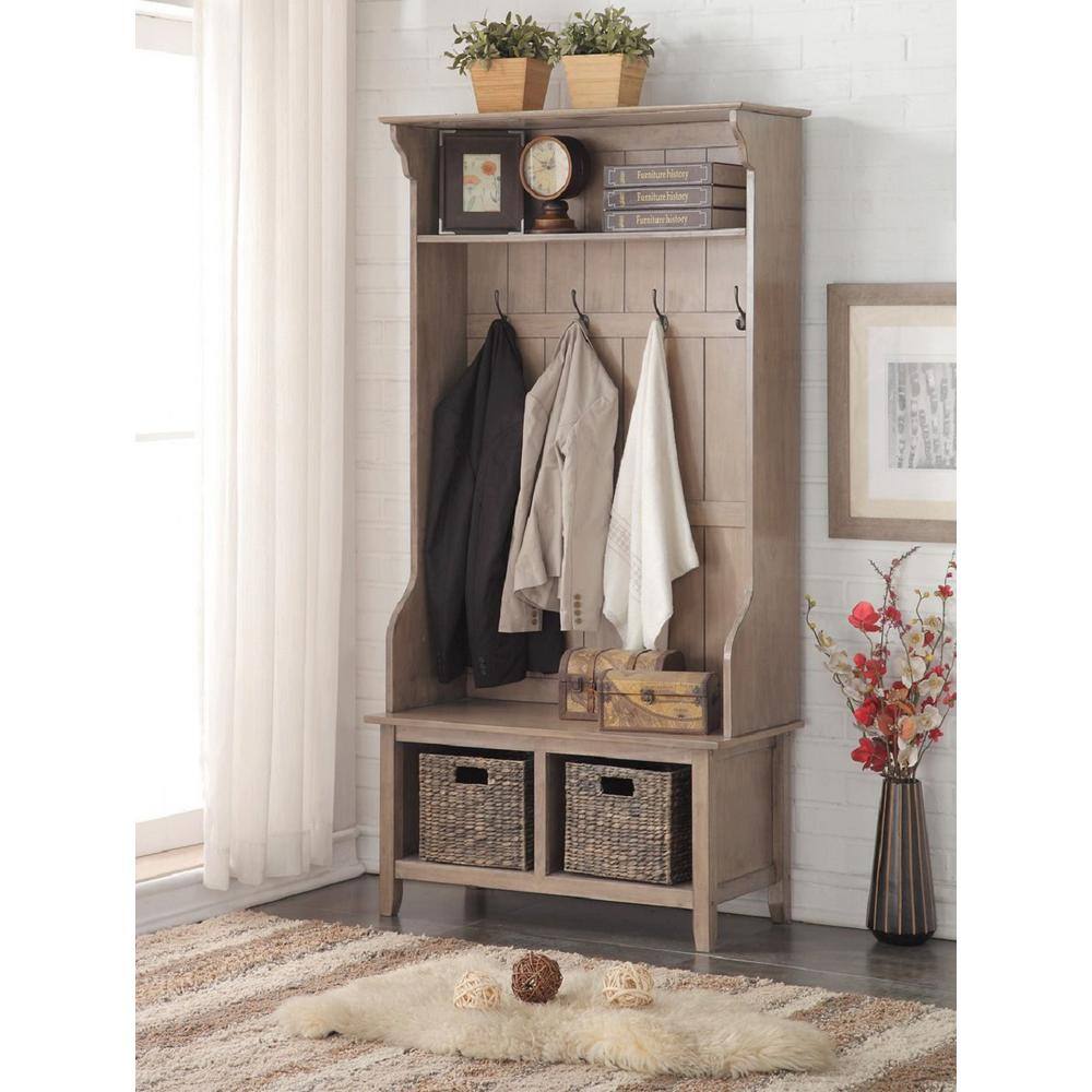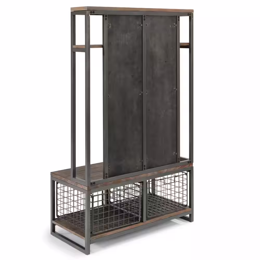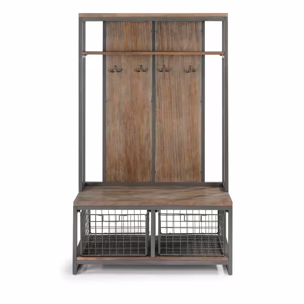 None Howard Coffee Wood 32 in. Shoe Rack with Coat Hooks, Hall Tree with Shoe Bench and Shelves