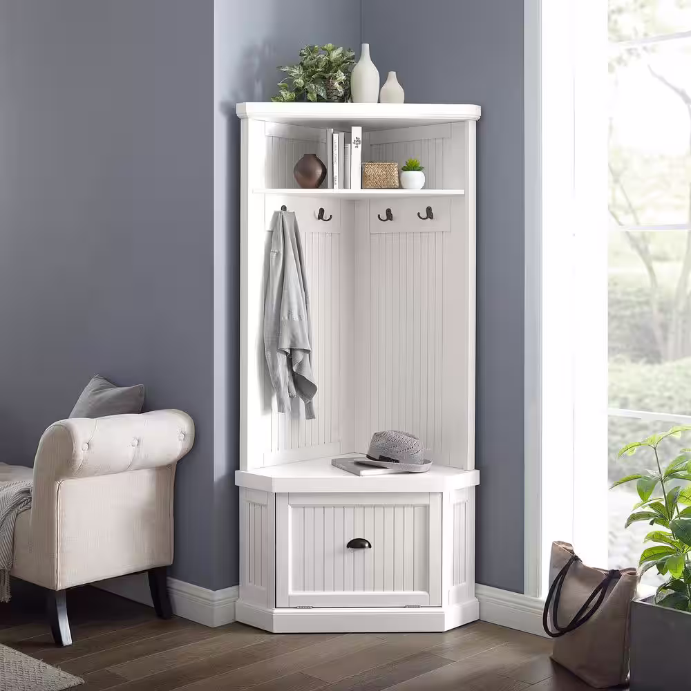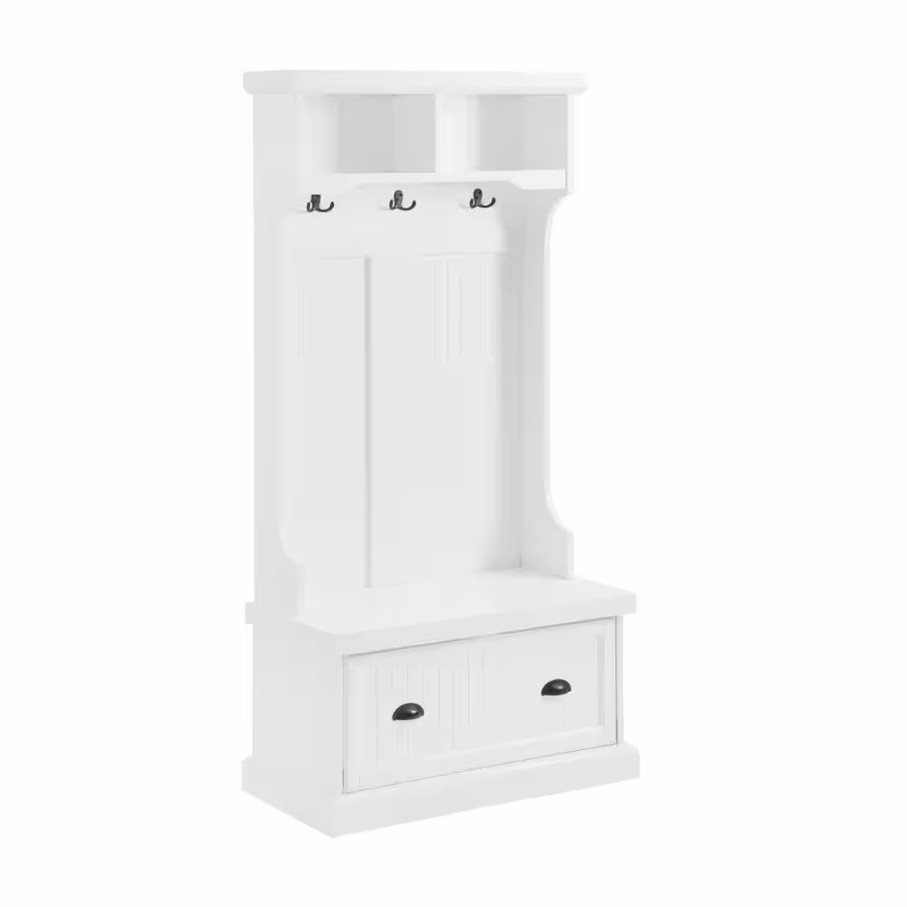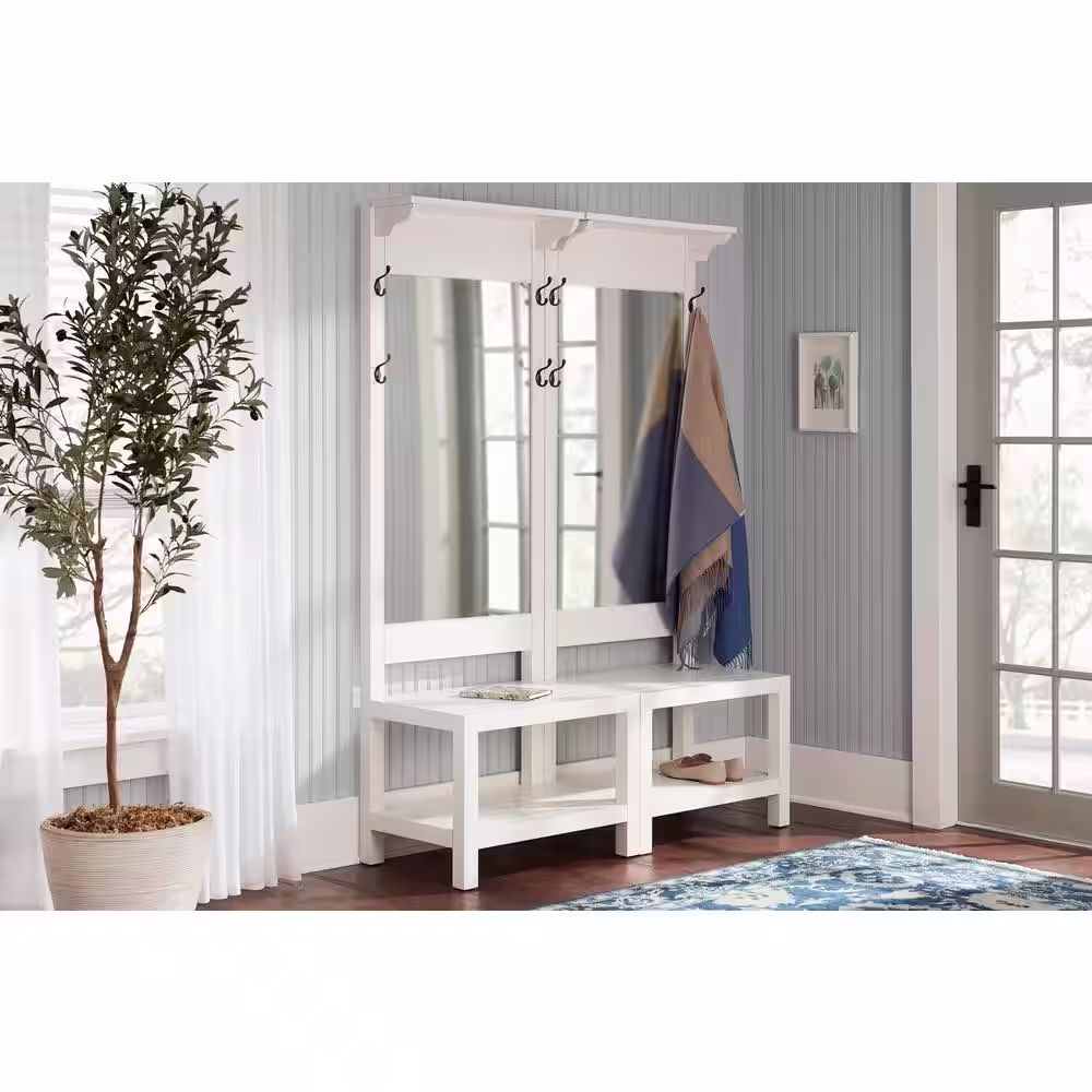 Home Decorators Collection Baythorn White Finish Wood Hall Tree with Mirror (25 in. W x 72 in. H)