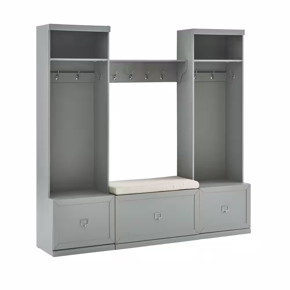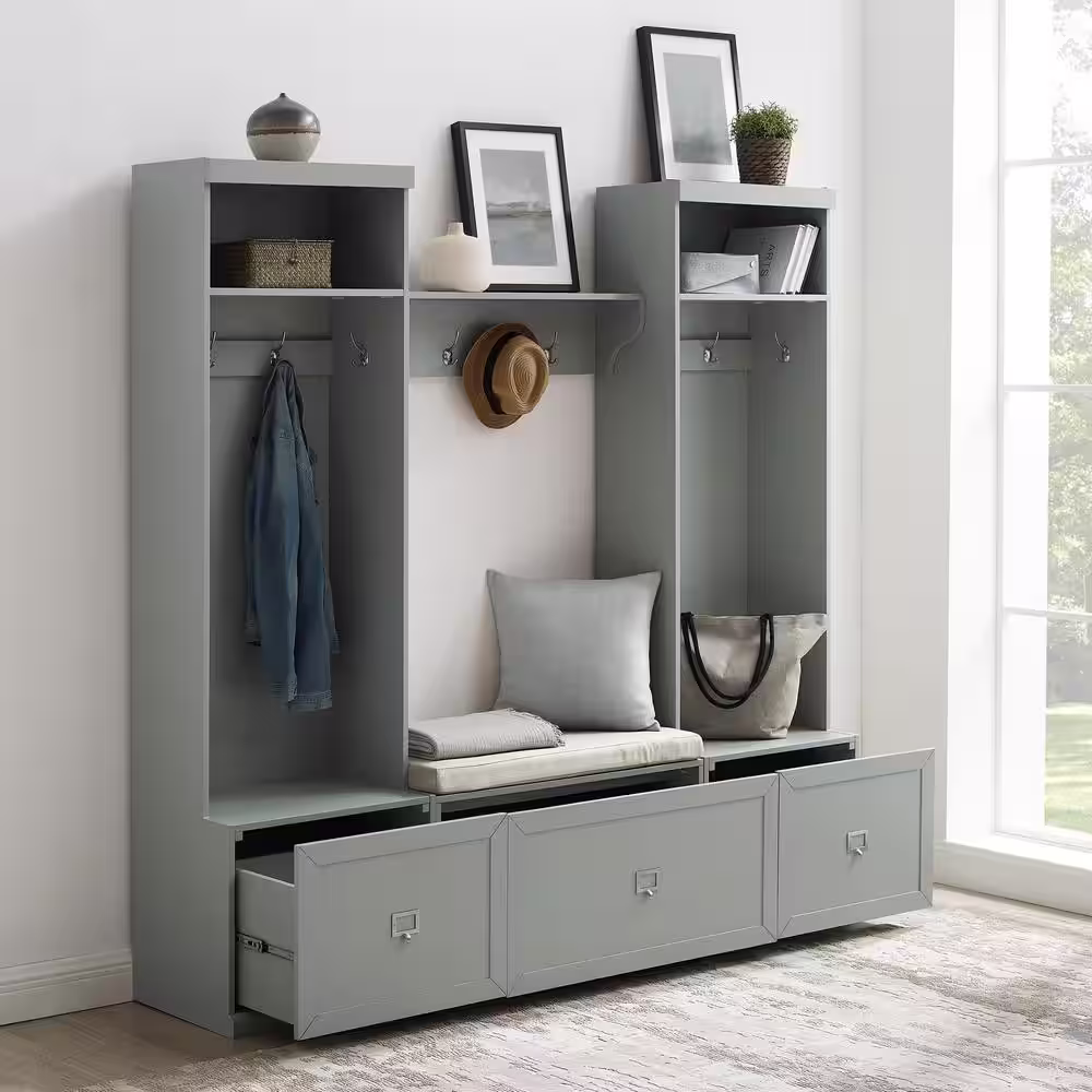 None Carmalita Black and Gray Hall Tree with Shoe Cubby and Coat Rack, Shoe Rack Bench with Wall Mounted Shelf and Hooks