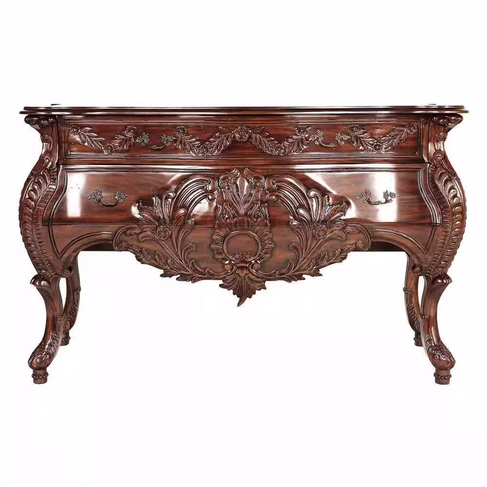 Design Toscano Le Piccard 58 in. Brown Standard Rectangle Top Wood Bombe Console