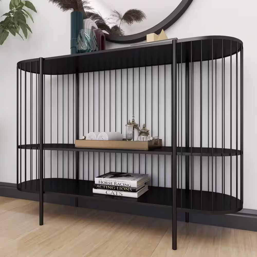 Litton Lane 48 in. Black Extra Large Oval Metal Narrow Open Wire Frame 2 Shelf Console Table