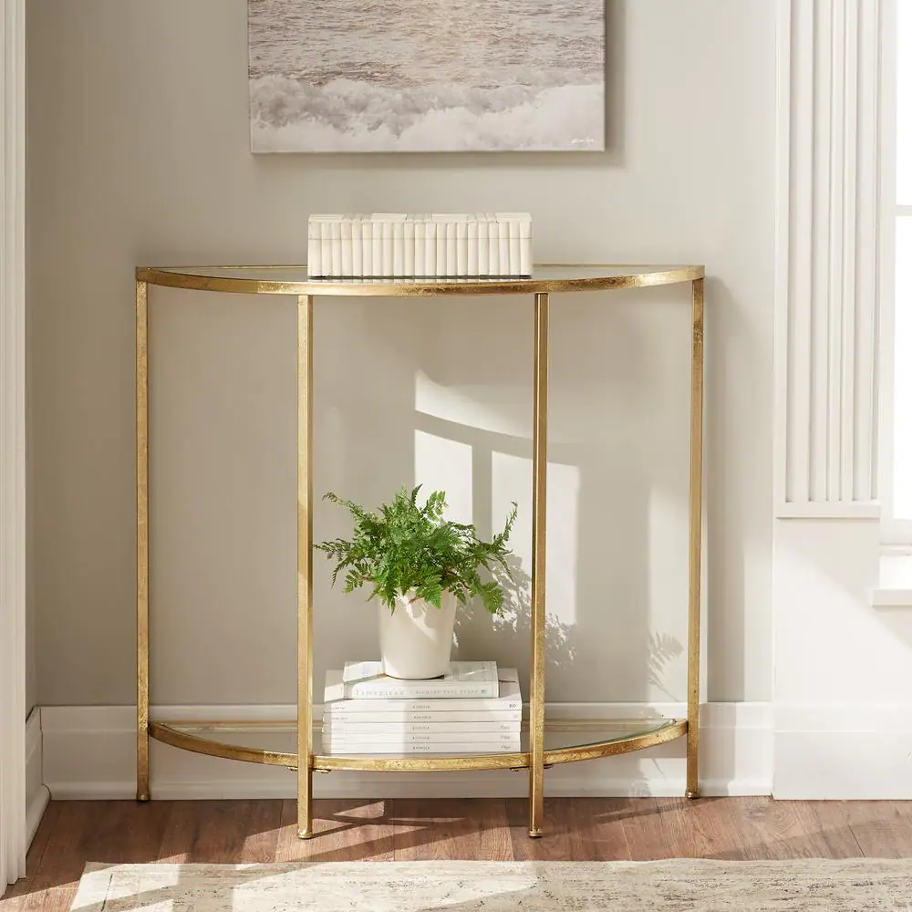 Home Decorators Collection Bella 32 in. Gold Leaf/Clear Standard Half Moon Glass Console Table with Storage