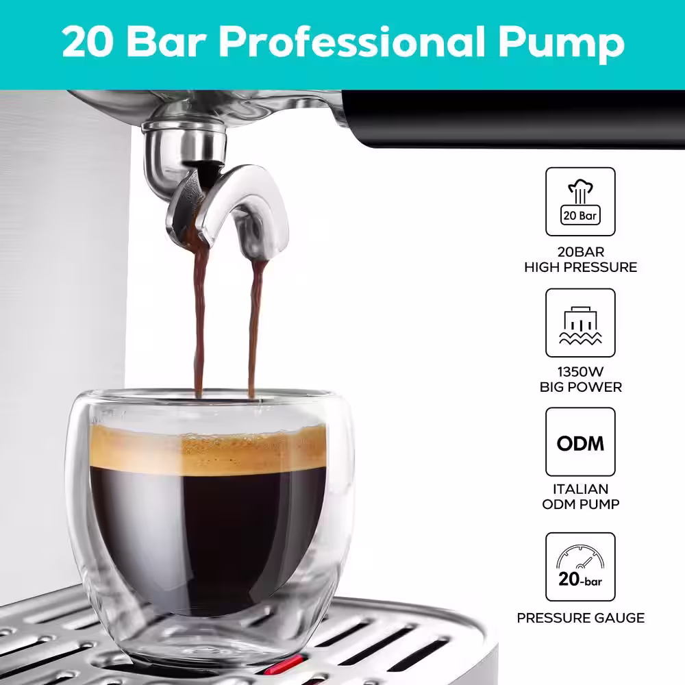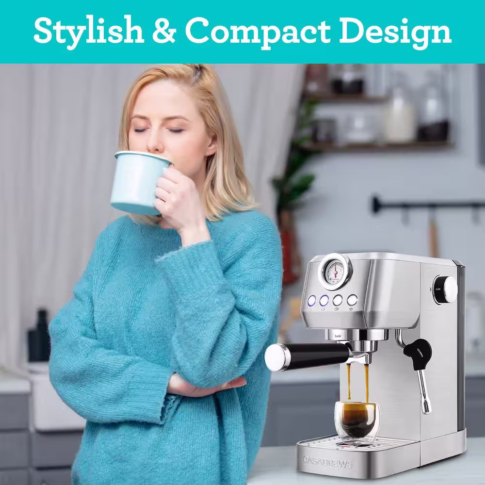 CASABREWS 3700-Gense 20-Cups Sliver Stainless Steel Espresso Machine with Powerful Steam Wand